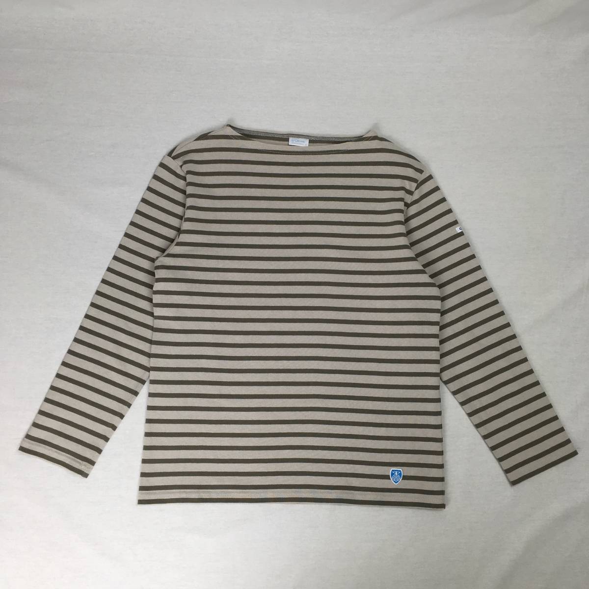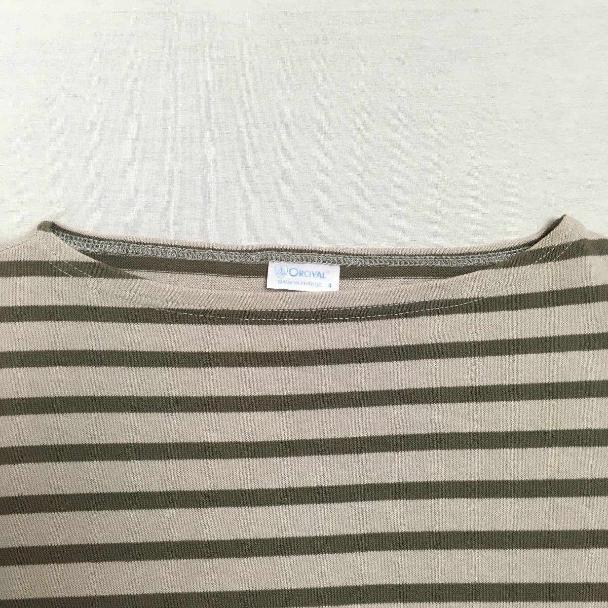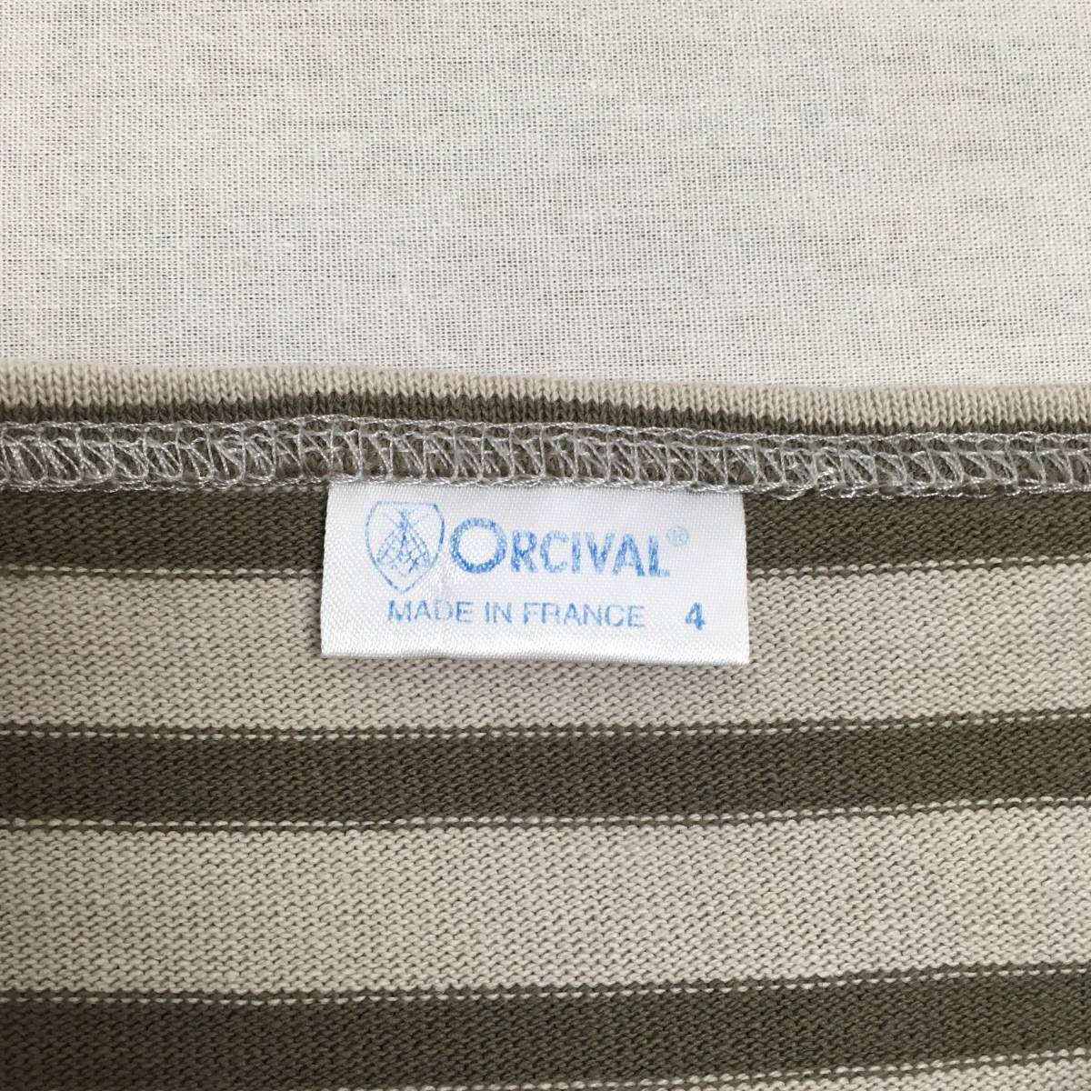ORCIVAL オーシバル フランス製 コットンロード バスクシャツ 長袖 サイズ4 ベージュ/モスグリーン ボーダー カットソー