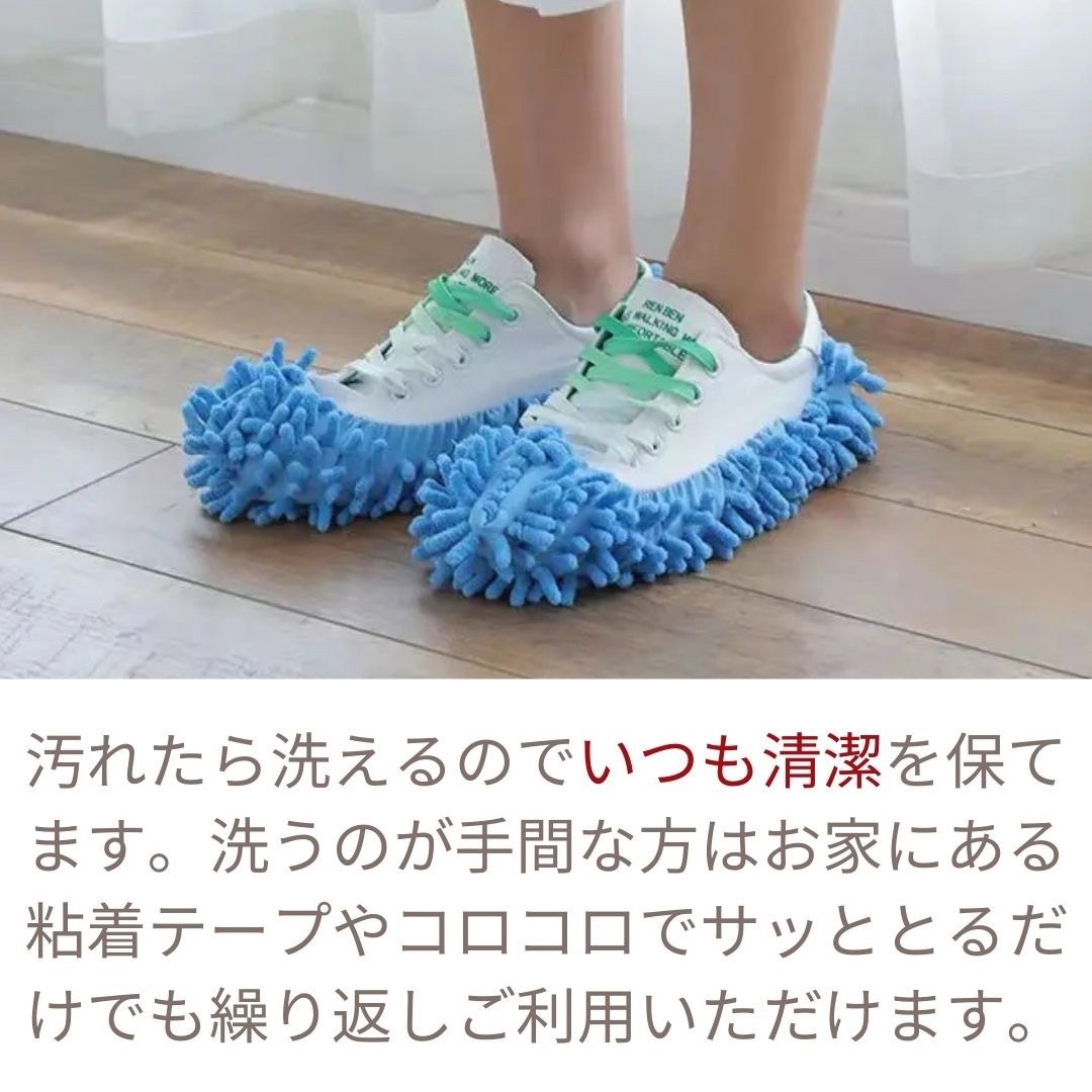 モップスリッパは脱ぐだけで洗えるのでしばらくは買い替えも不要、何度でもご利用いただけます。柔らかいシェニール生地で床に傷が付きにくい上に、賃貸などで気になる足音、素足で歩いても、スリッパを履いても、パタパタと音が鳴ってしまいますよね。でもこのモップスリッパなら足音がとても静かになります。モップの部分がクッションになって、足から床に伝わる衝撃を抑えてくれます。忙しい家事の間に掃除もできちゃう優れものです!これで日頃のお掃除も楽になりますね