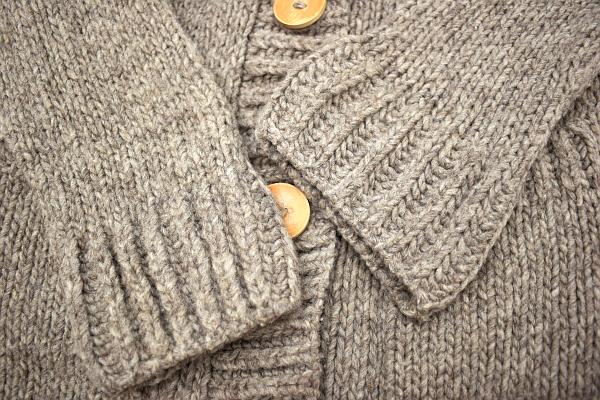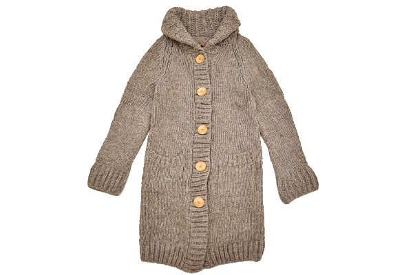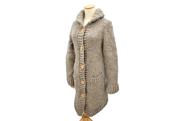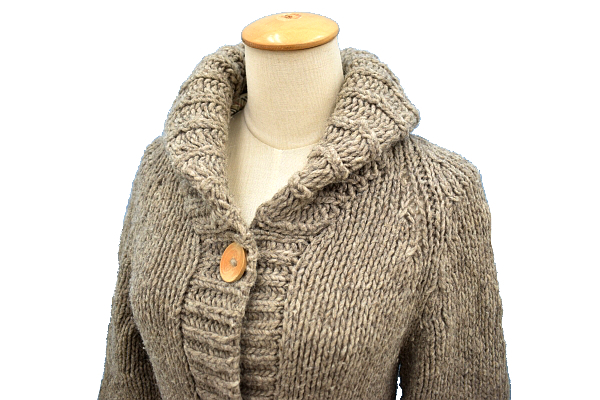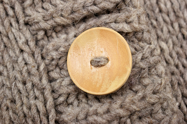 ベージュ 木ボタン 外ポケット二個 ニット