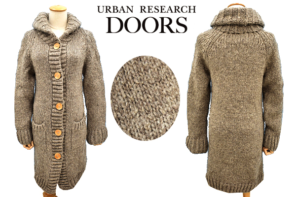 A-4531★送料無料★超美品★URBAN RESEARCH DOORS アーバン リサーチ★ローゲージ ウールニット ロング セーター コート ジャケット フリー