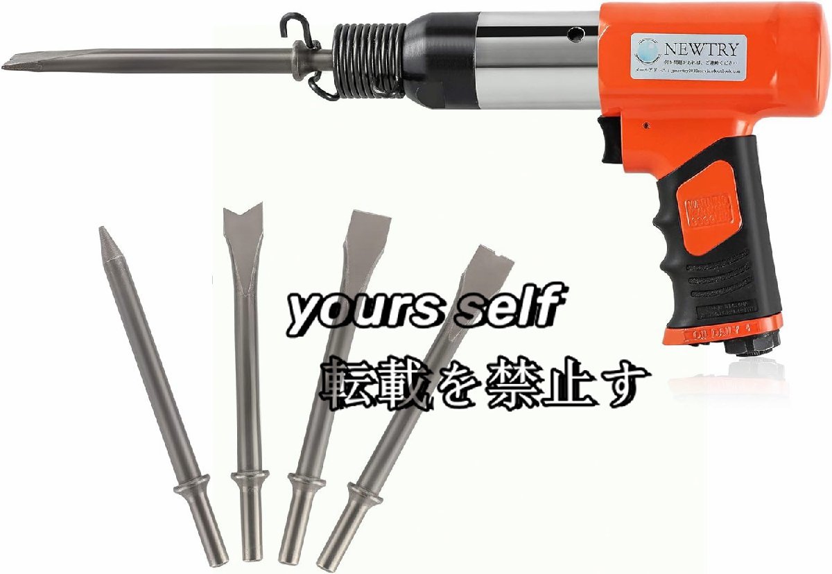 実用品 エアーハンマー 空気圧ハンマー ポイントチゼル/フラットチゼル コンクリート モルタル 石材 ハツリ作業 工業用 耐摩耗性 チゼル4本
