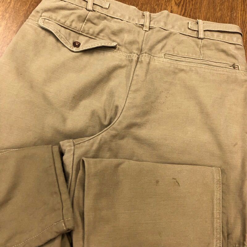 【コンディション】全体色あせ、所々毛羽立ち、所々毛玉、所々ダメージ、所々汚れ、折れ線跡あり、内側ウエストボタンはあるもののサスペンダーなし(写真をご確認ください)