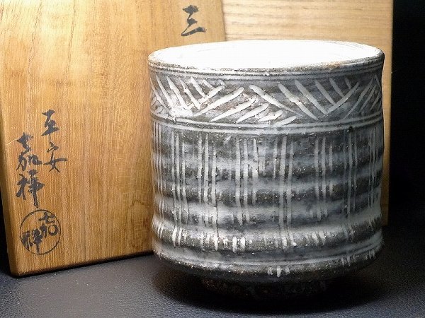 平安 森岡嘉祥造・刷毛目・三島湯呑・木箱付・茶道具・茶器茶事お茶懐石