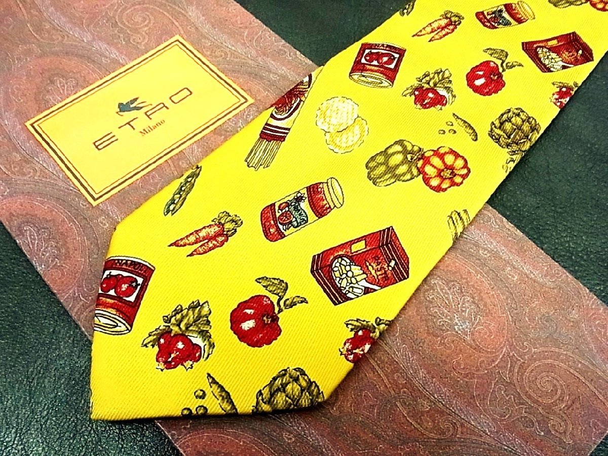 ♪vr0366♪良品♪【ETRO】エトロ【パスタ トマト缶 カボチャ グリンピース 人参 柄】ネクタイ