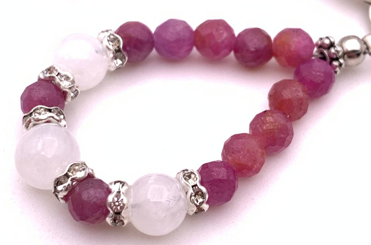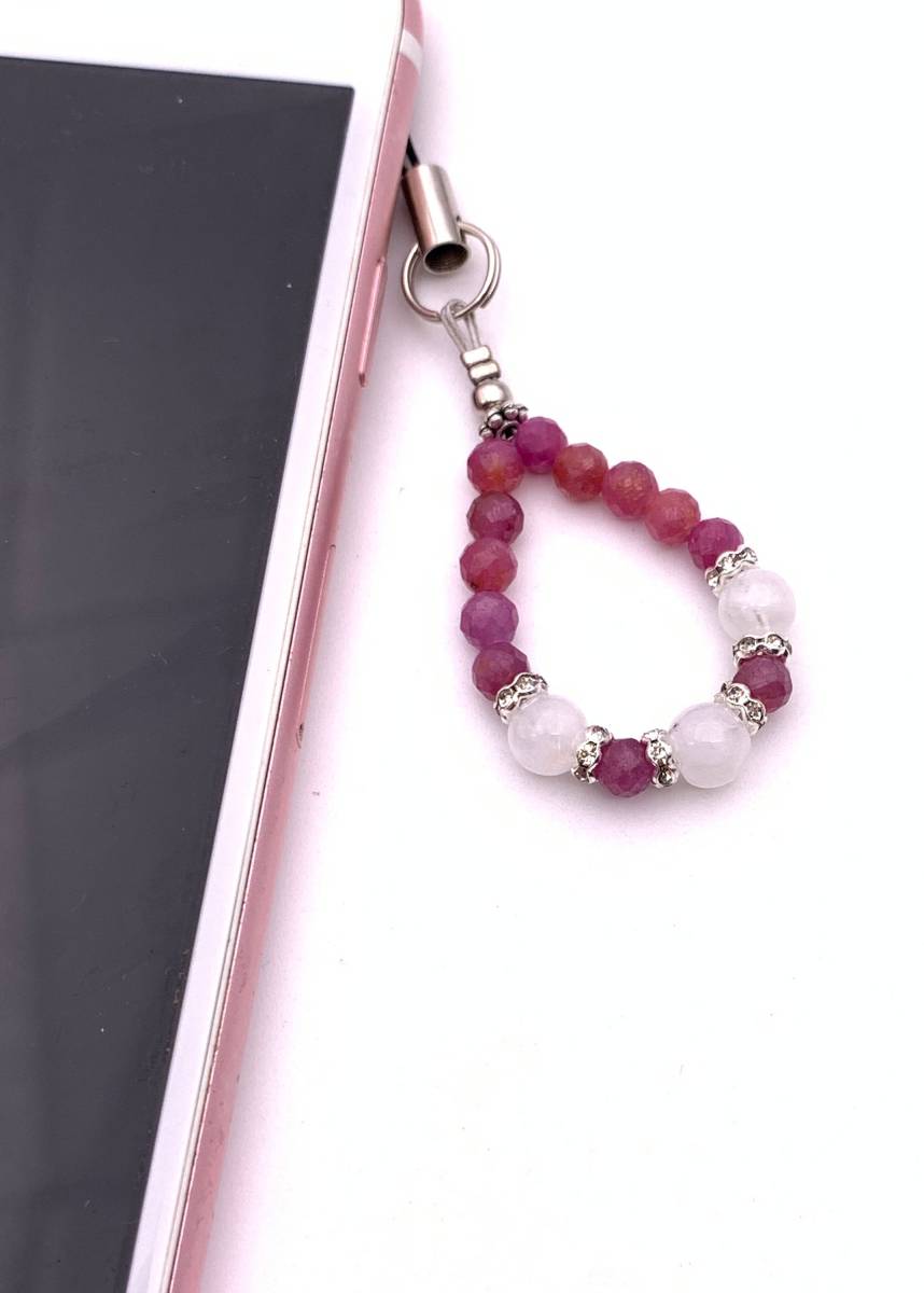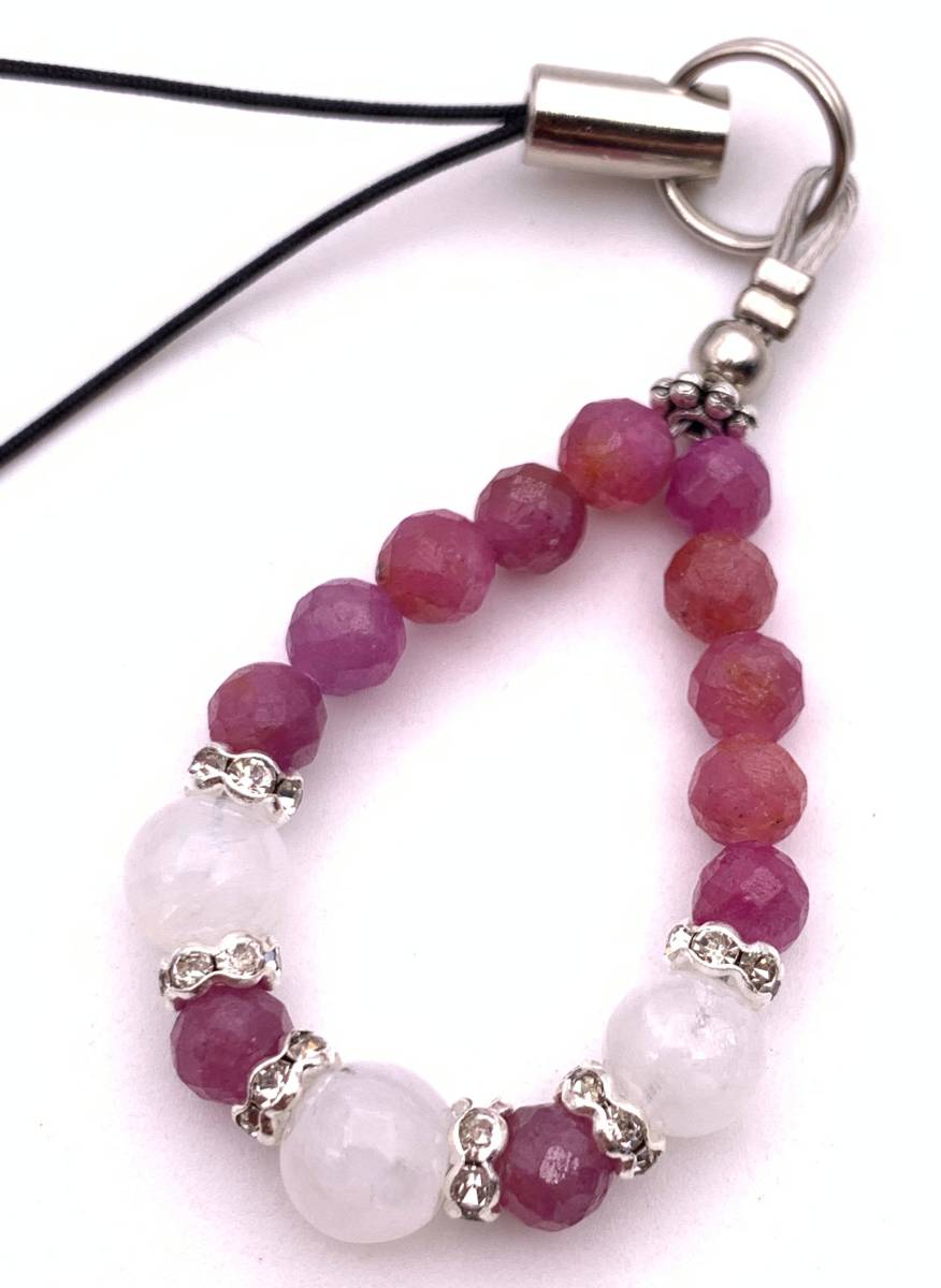 手作り!オリジナル★天然石ムーンストーン&ルビーのストラップ