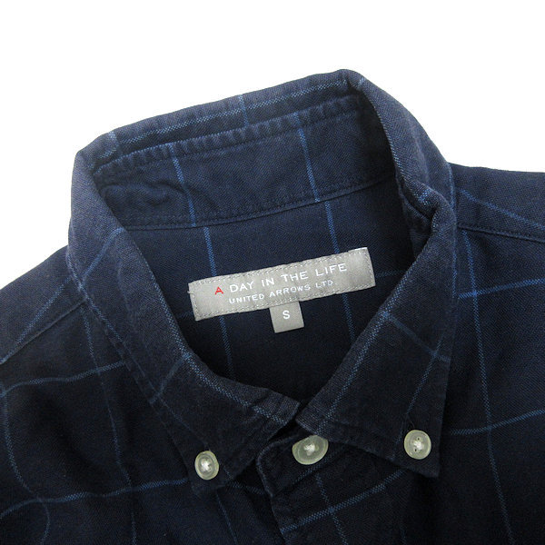 s■ユナイテッドアローズ/DAY IN THE LIFE チェック柄 長袖BDシャツ【S】紺/MENS/44【中古】