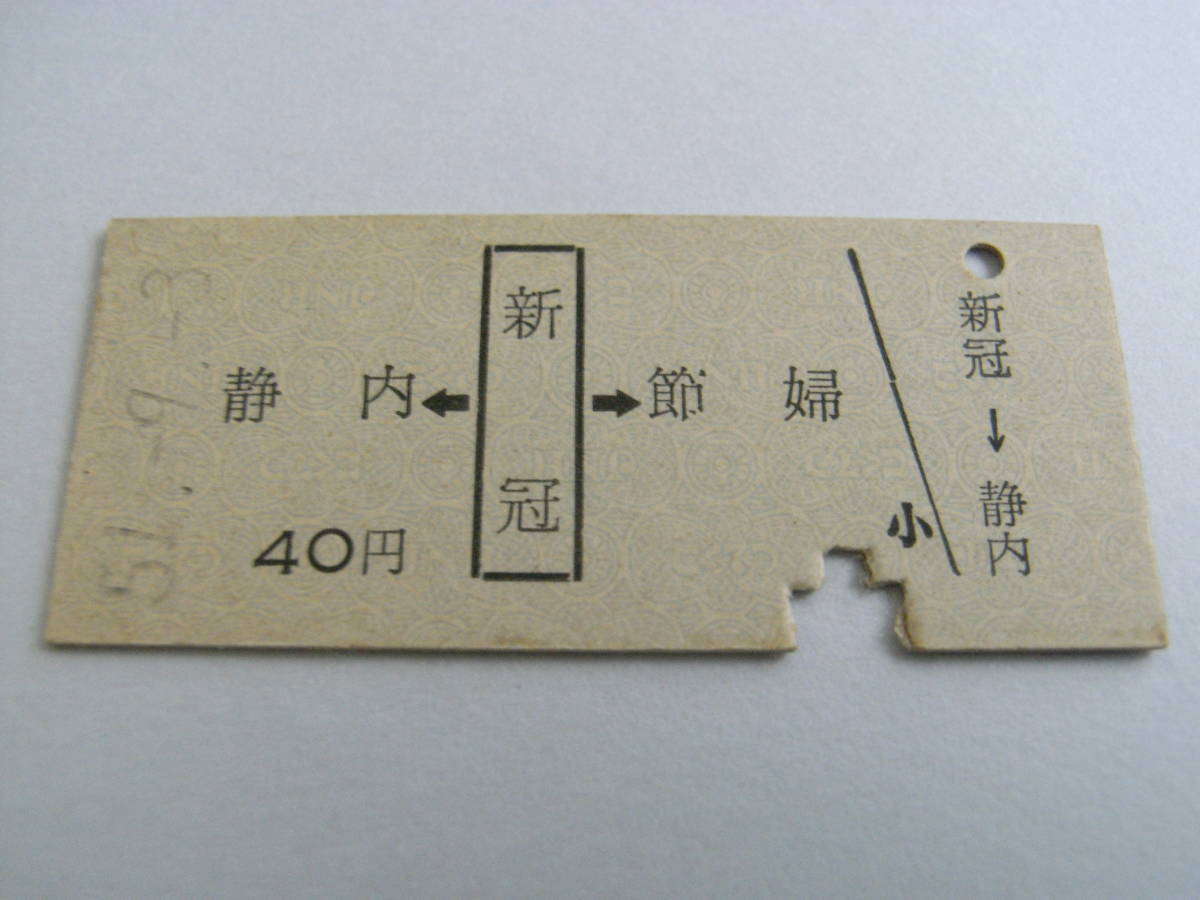 日高本線 静内←新冠→節婦 40円 昭和51年9月3日 新冠駅発行 節婦駅無効印 国鉄 廃線