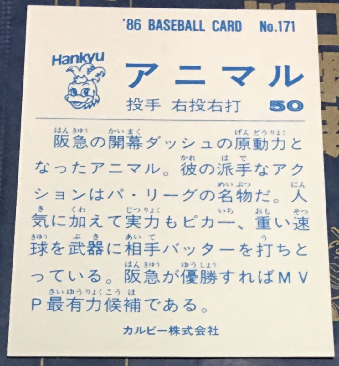 1986年カルビー アニマル 阪急ブレーブス No.171になります。
