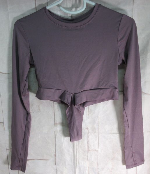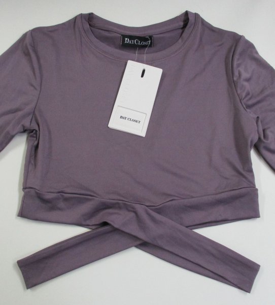 16 01133 ☆ [DAYCLOSET] ヨガウェア トップス レディース 長袖 ショート丈 指穴 薄手 ヨガTシャツ (M, パープル)【アウトレット品】