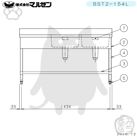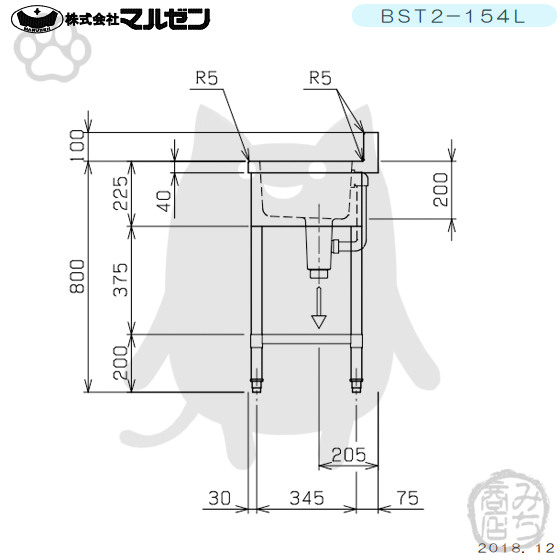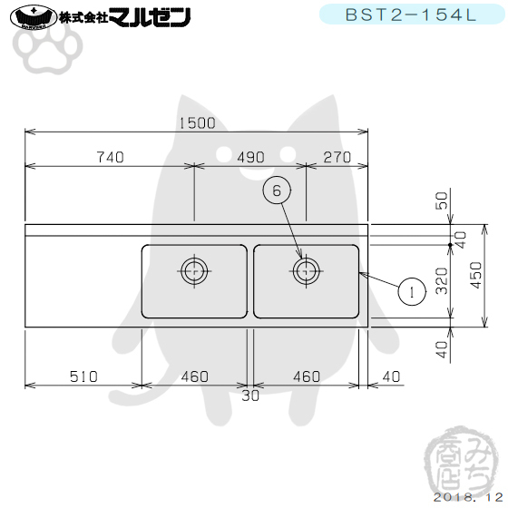 BST2-154L マルゼン 2槽 二槽 台付 シンク ステンレス 流し台 幅1500×奥行450×高さ800+BG100mm 別料金にて 設置 入替 回収 廃棄