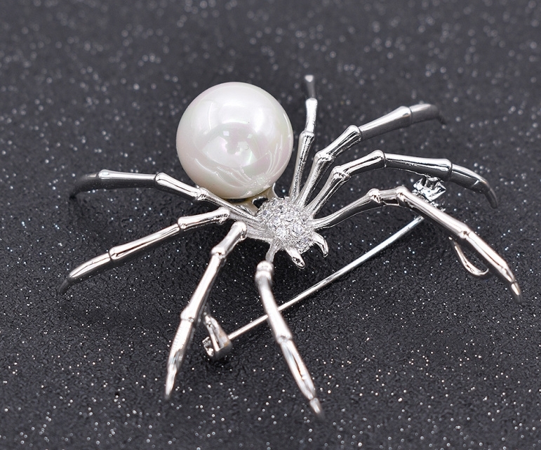 商品名 | 送安[ クモ 蜘蛛 くも ブローチ ]昆虫ピンバッジpin動物ピン金属メッキ装飾アクセサリー真珠パール針金ワイヤー虫ペンダント益虫スパイダー |