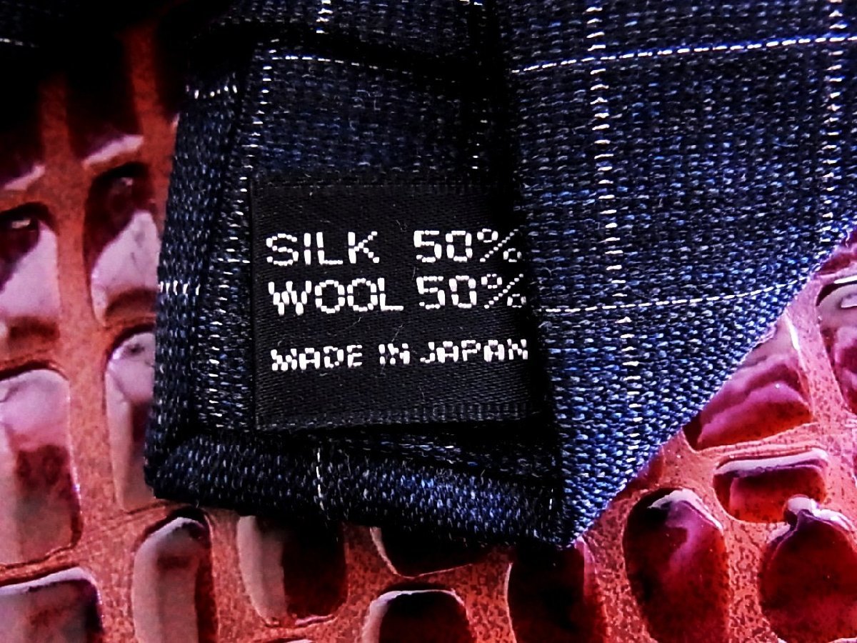 cw00979【ウール50% シルク50%】トレードマーク「格子 柄」ネクタイ