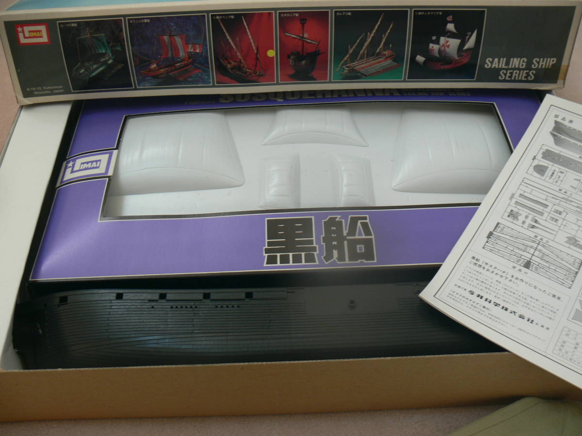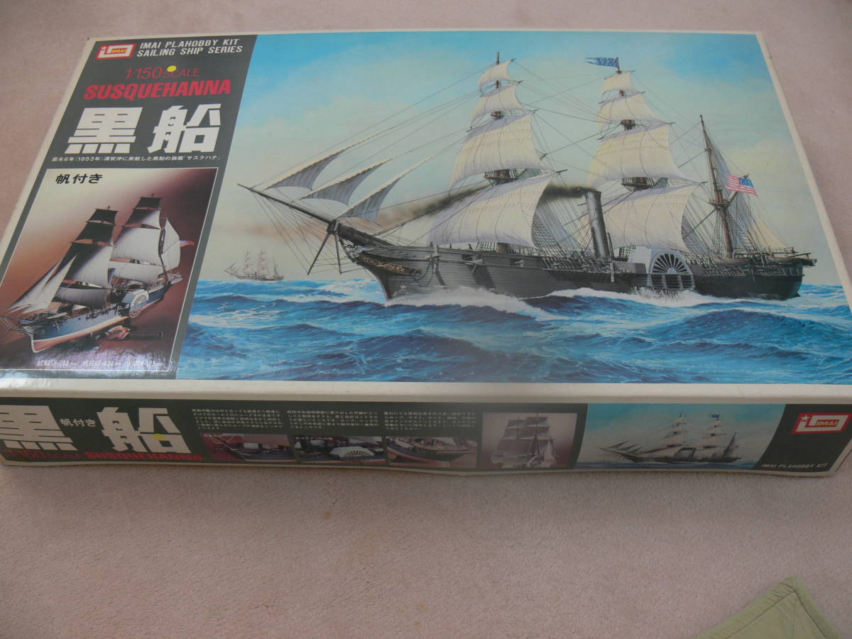今ではこのサイズを製作するにはコストが合わない今は無きイマイ製1/150サイズの帆船歴史シリーズの黒船で箱に薄汚れなど有大絶版品