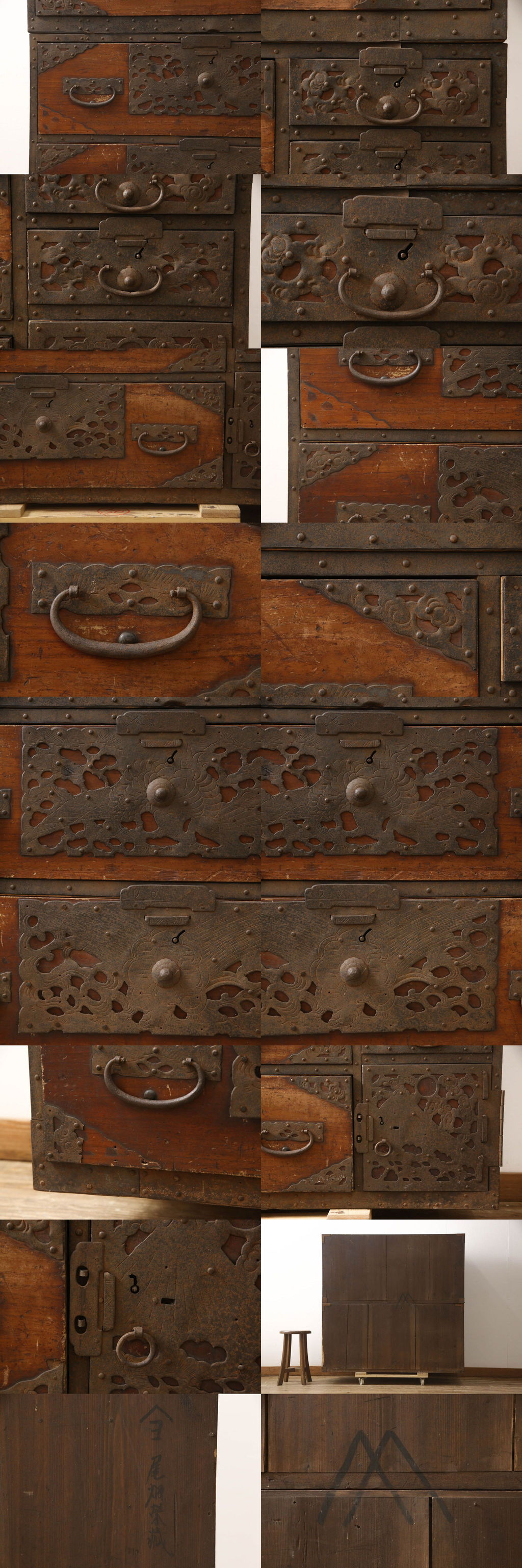 和製アンティーク 前面・内部桐材 透かしの入った金具が緻密で美しい佐渡八幡箪笥(佐渡箪笥、和たんす、収納箪笥、時代箪笥、衣装タンス、引き出し)(R-062791)