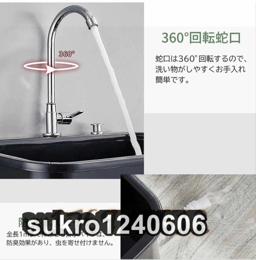 ガーデンシンク キッチンシンク 防水 防湿 蛇口 360度 回転 大容量 収納 (黒)