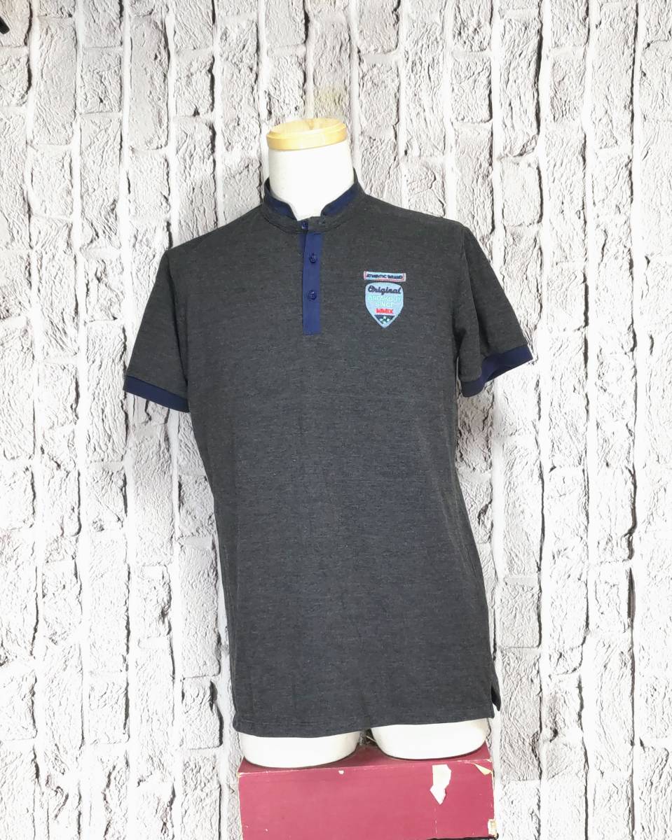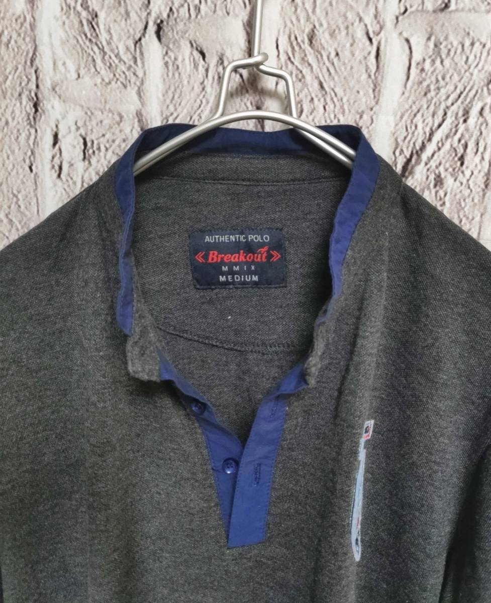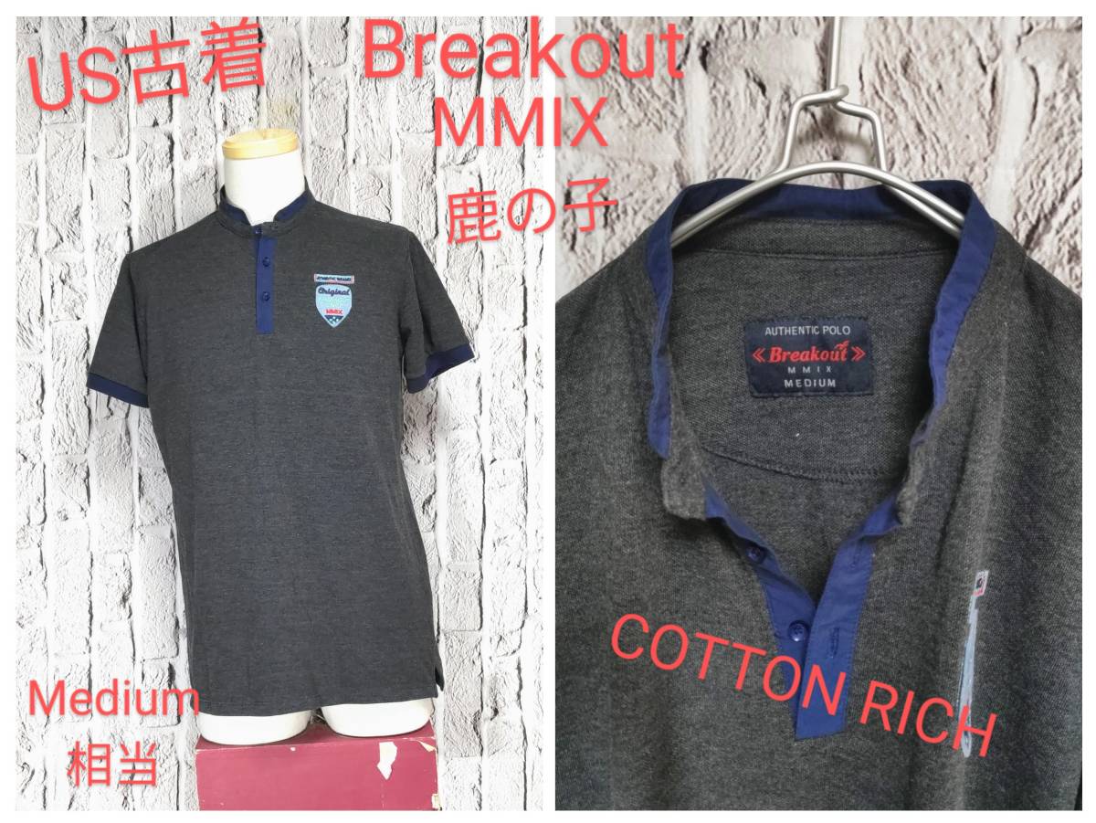 ★送料無料★ US古着 Breakout ヘンリーネックTシャツ 鹿の子ポロシャツ チャコール Medium 相当