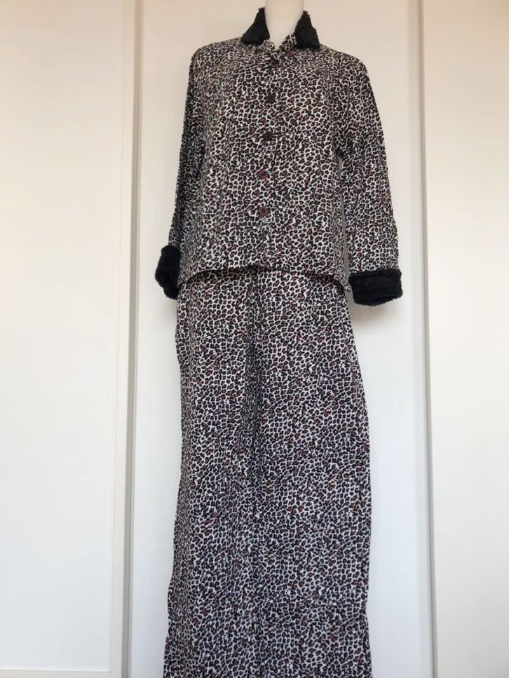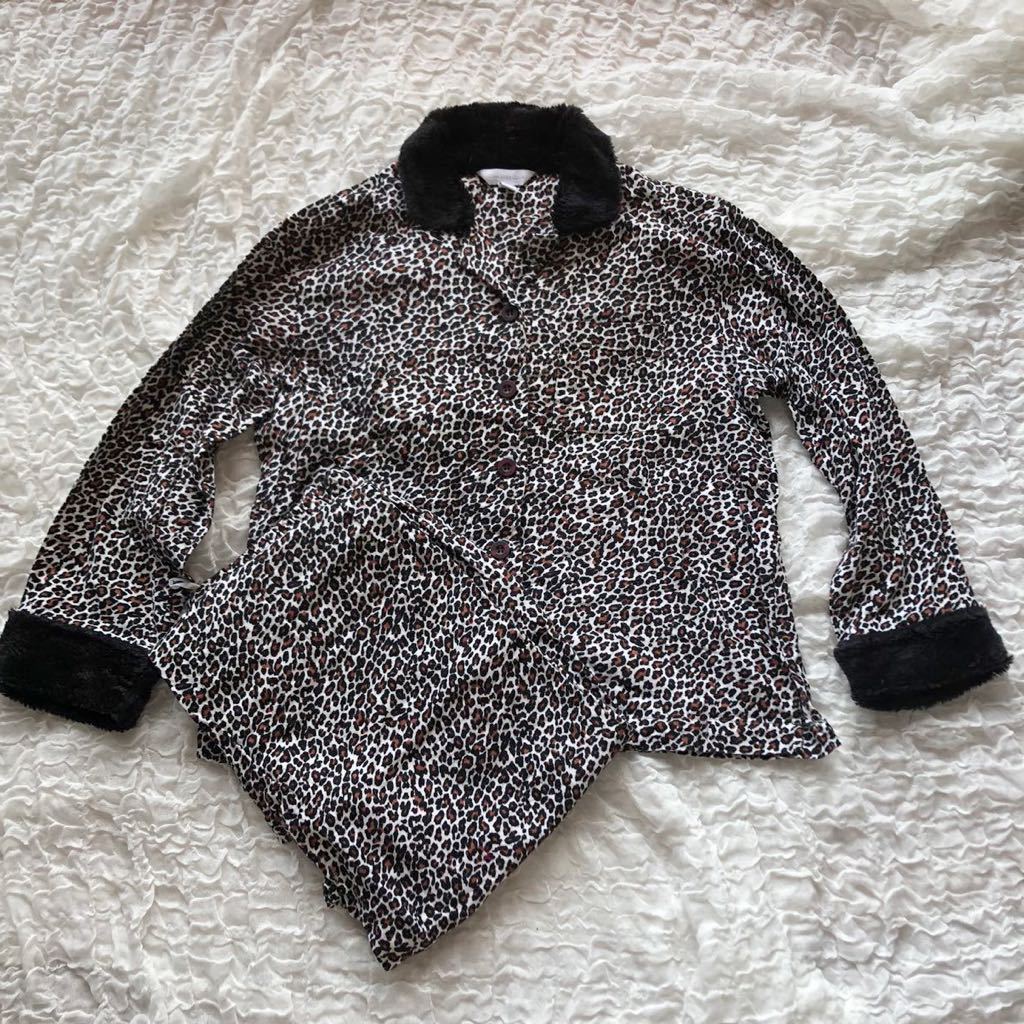 ヒョウ柄×ボア襟のパジャマです。