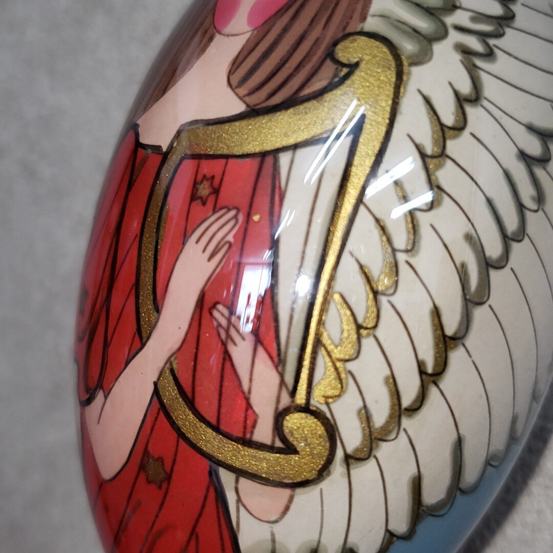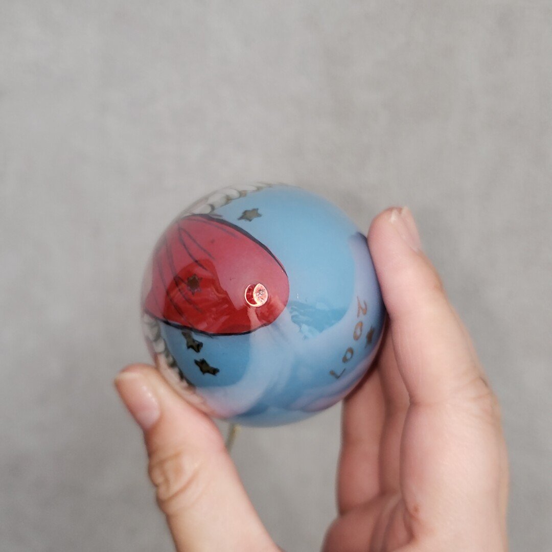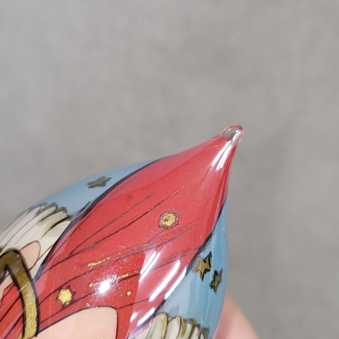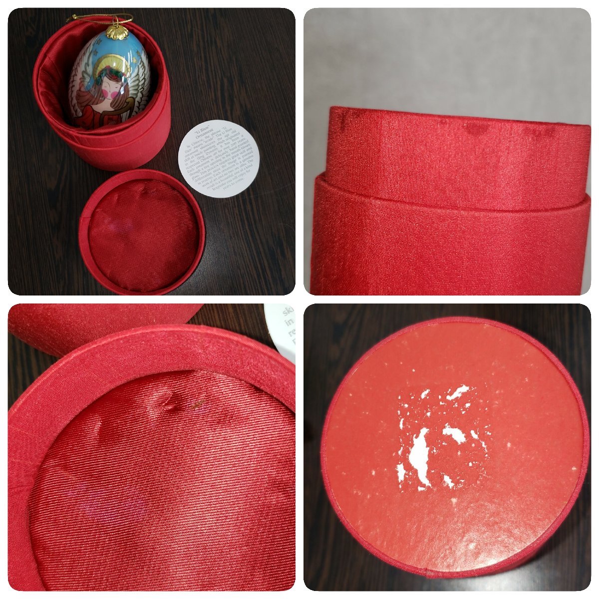 レトロなガラス製のオーナメントです。経年による汚れ、擦れがあります。外箱にも汚れ、擦れ、シール跡があります。
