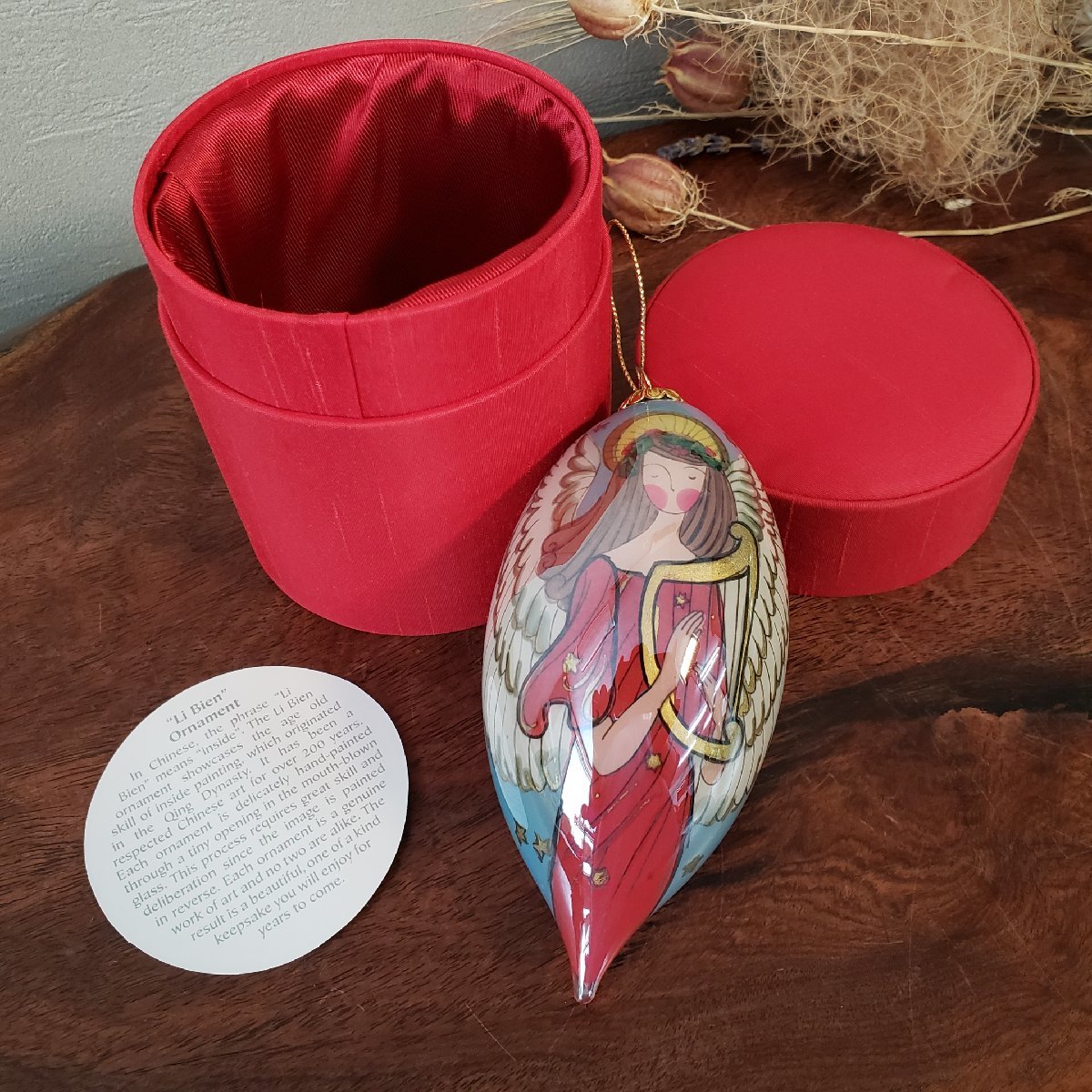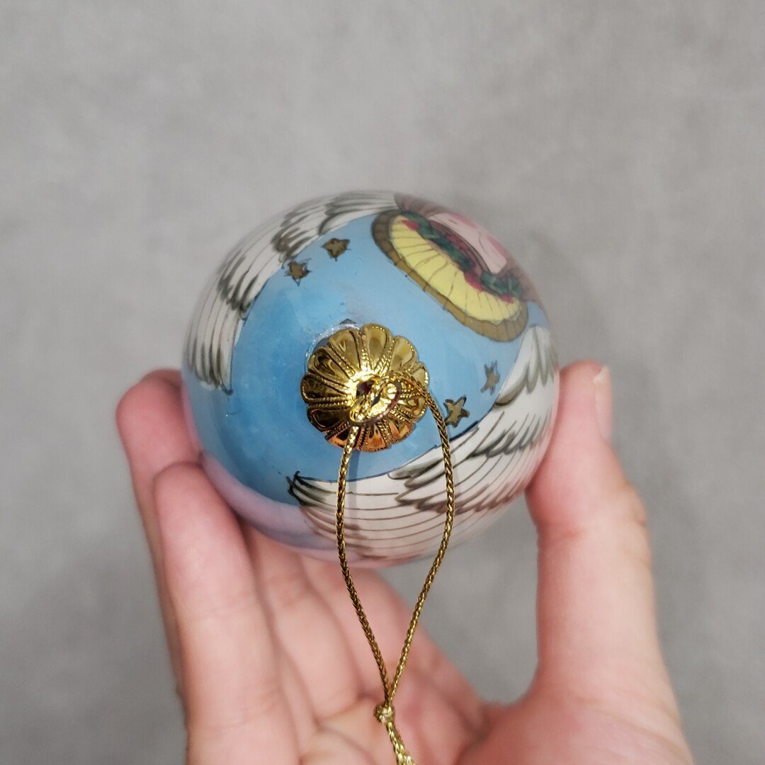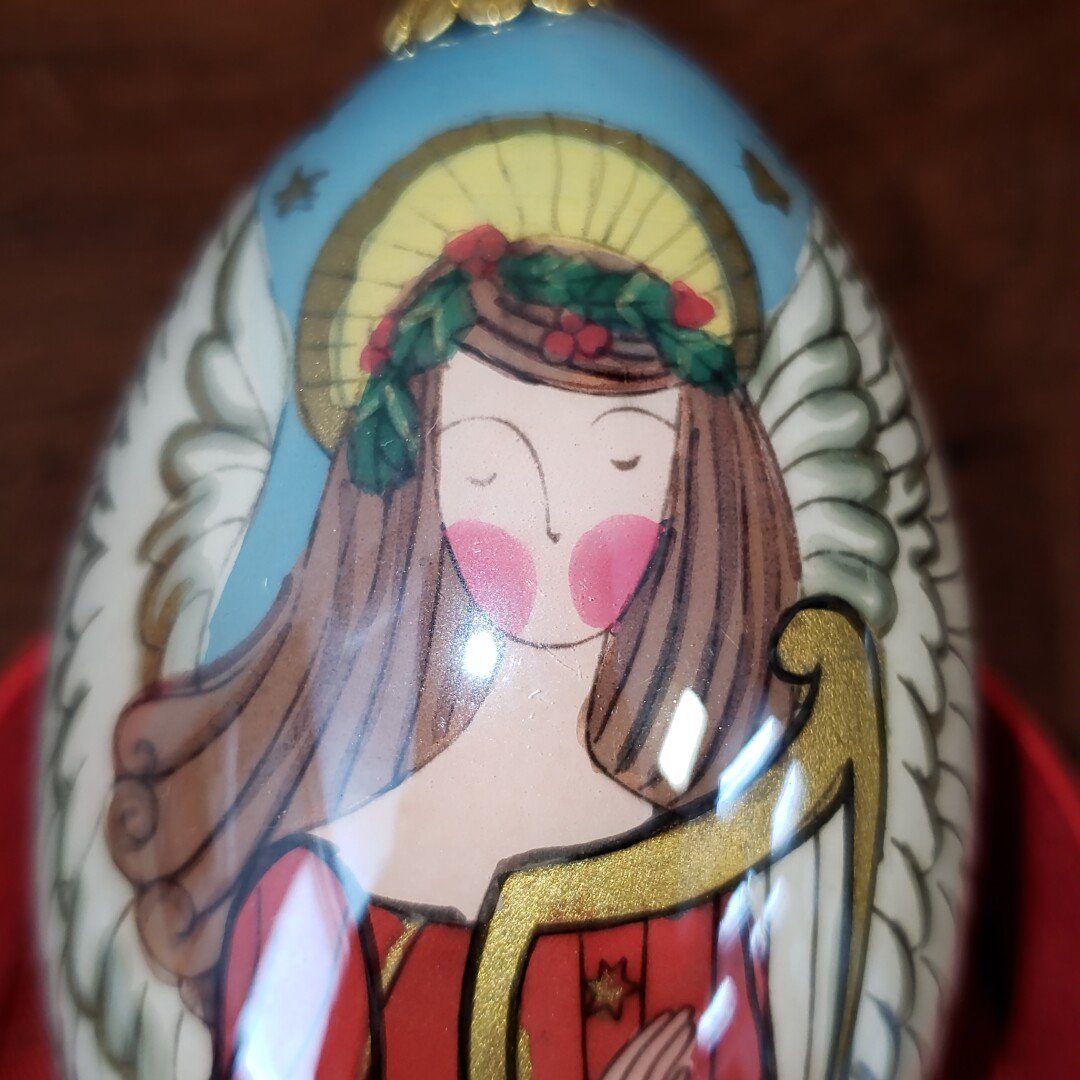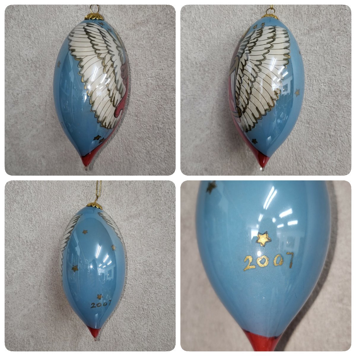 レトロなガラス製のオーナメントです。経年による汚れ、擦れがあります。外箱にも汚れ、擦れ、シール跡があります。