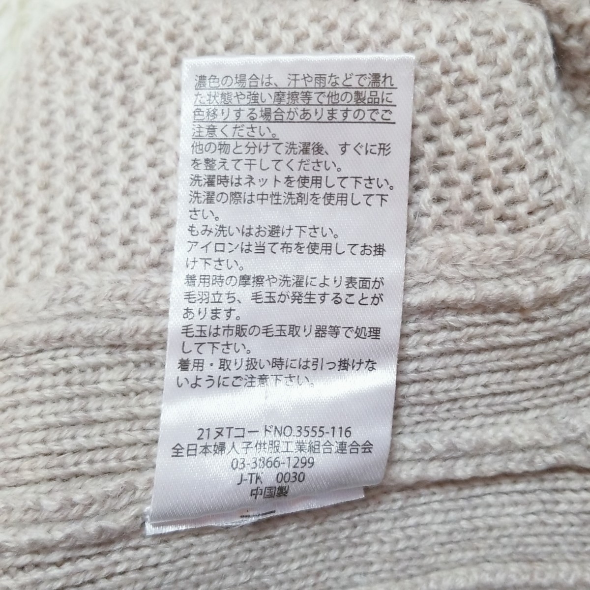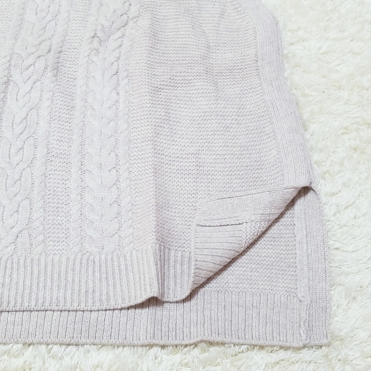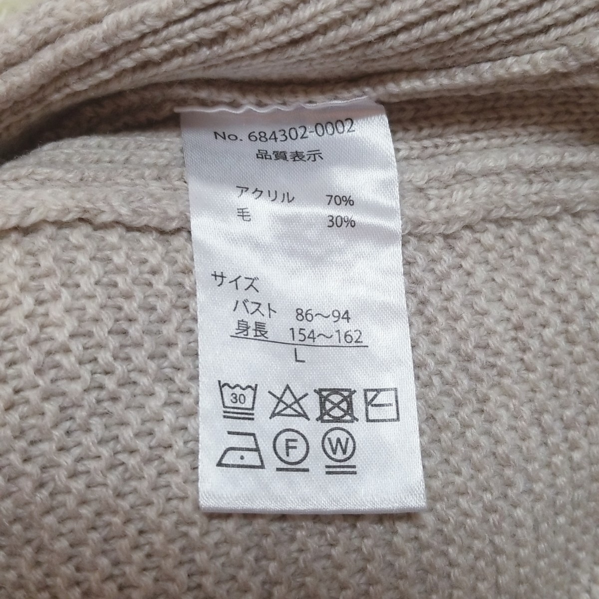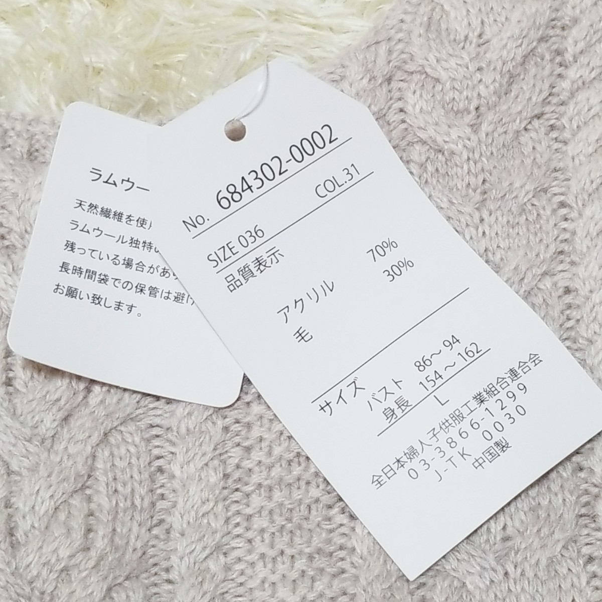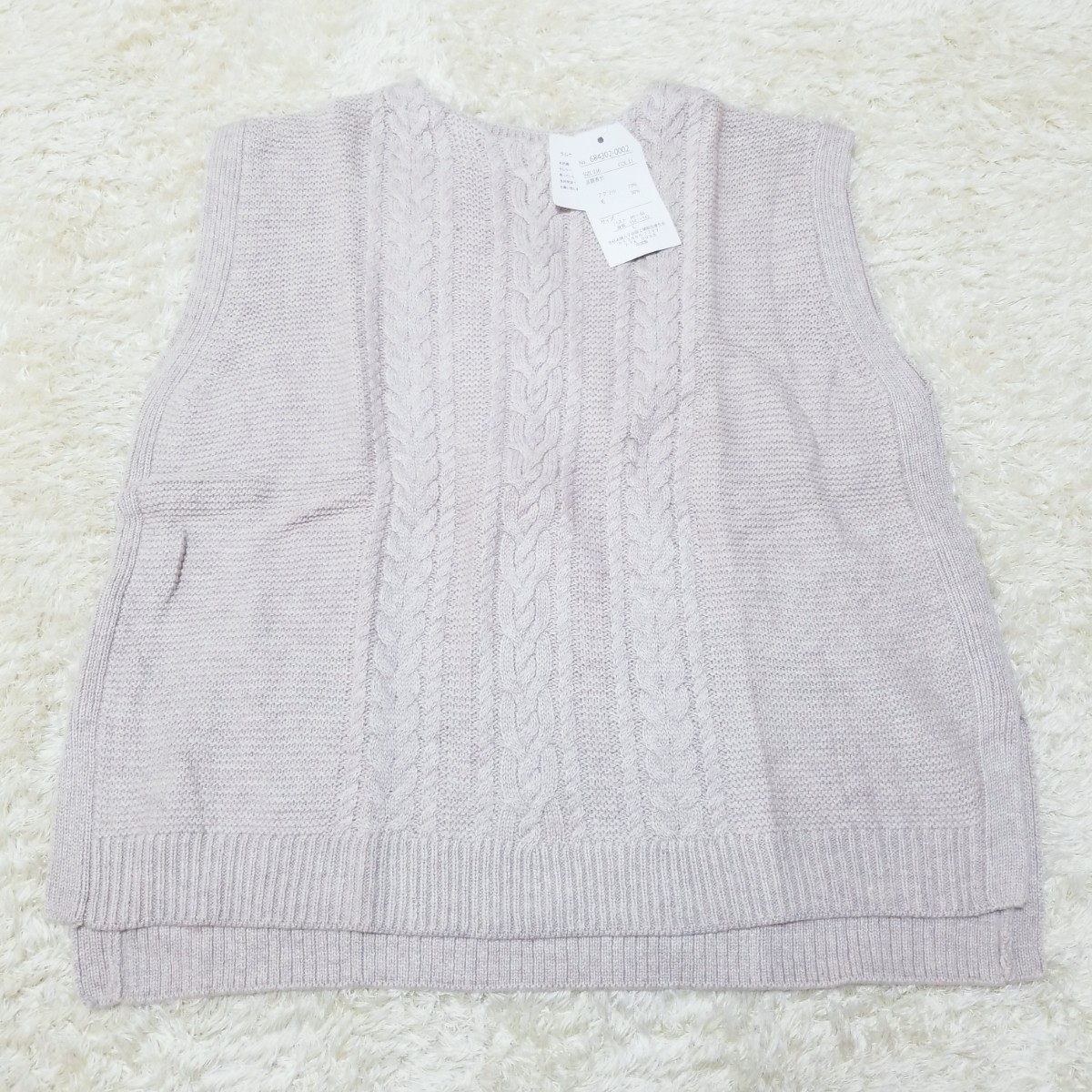 Y905 新品・未使用・タグ付き★ラムウール使用 ニットベスト ケーブルニットセーター サイドスリット レディース L ライトブラウン