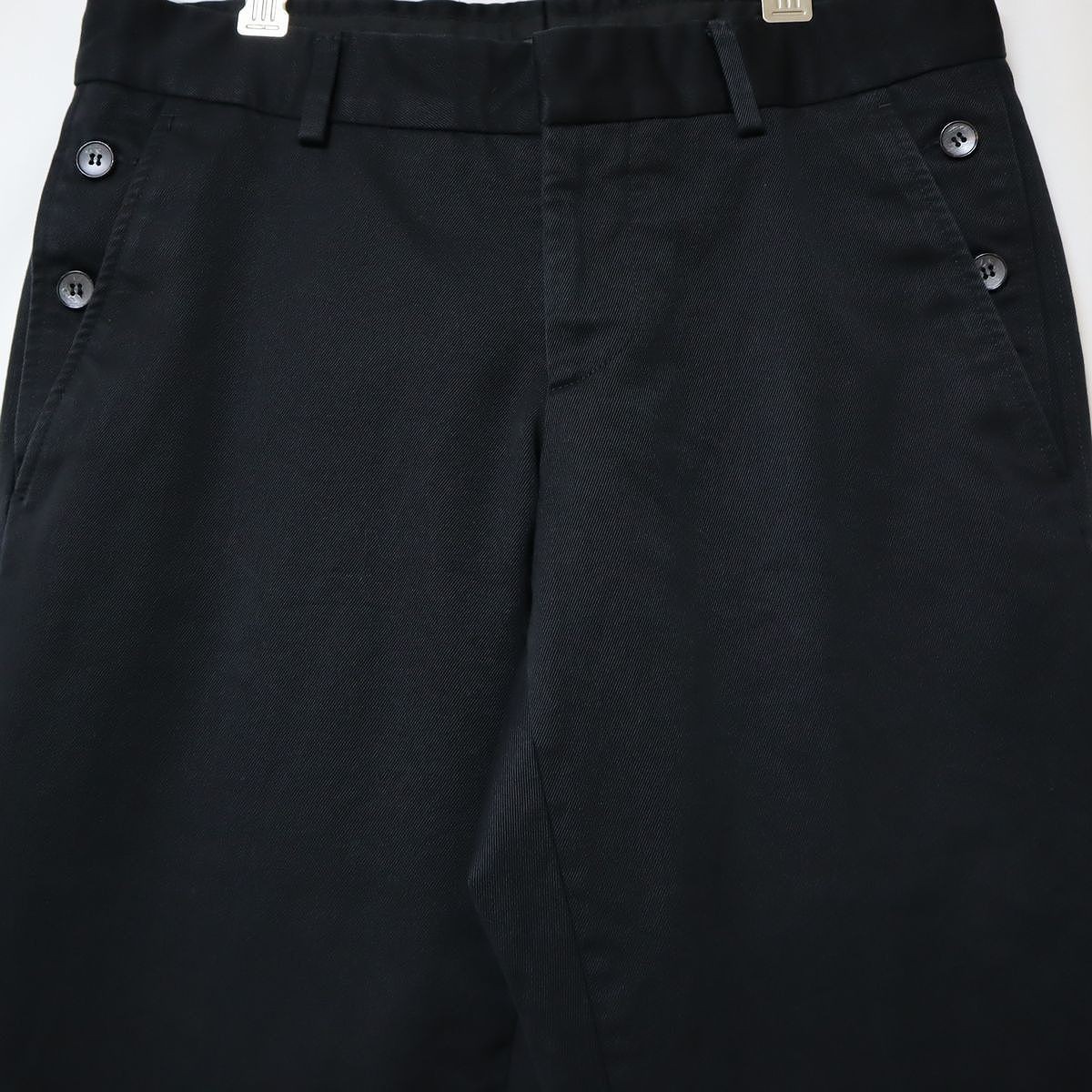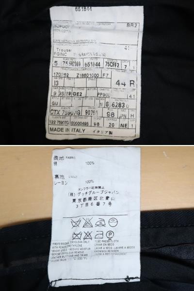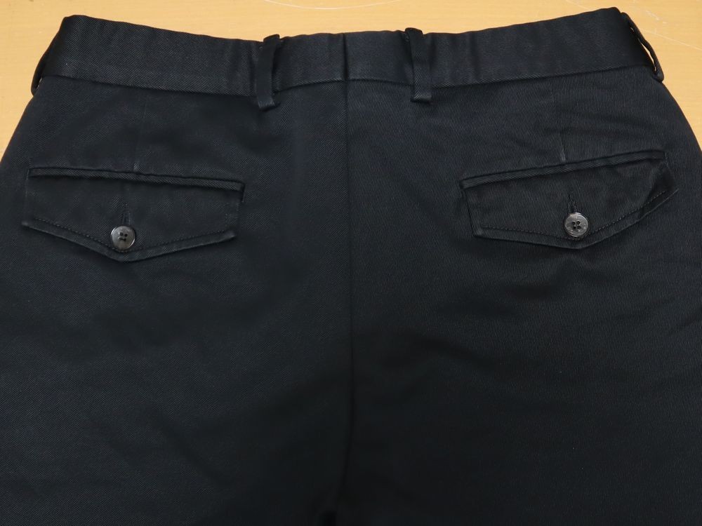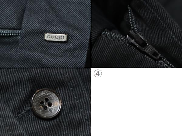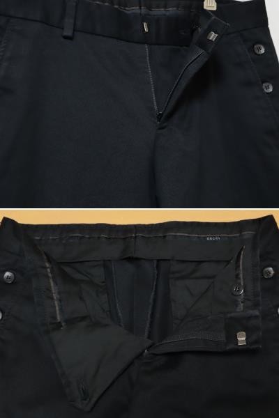 良品 イタリア製 グッチ GUCCI 厚手 100%コットンツイル メンズ ブラック ストレート パンツ 黒 44R ウエスト約76cm レングス72cmです。厚手の生地ですので、秋冬用です。クリーニング店にてクリーニング済みです。