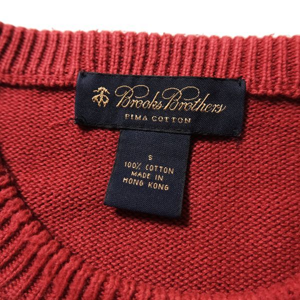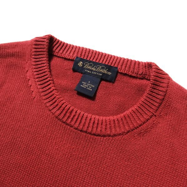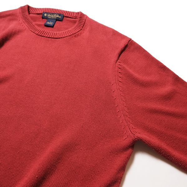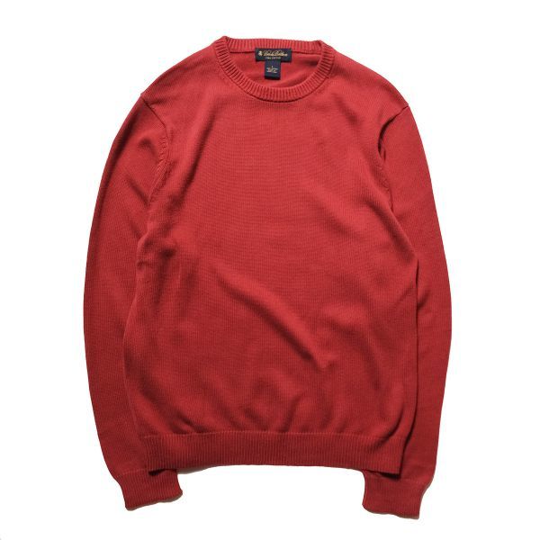 00's ブルックスブラザーズ クルーネック スーピマコットン ニットセーター (S) 小豆系 無地 00年代 旧タグ BROOKSBROTHERS