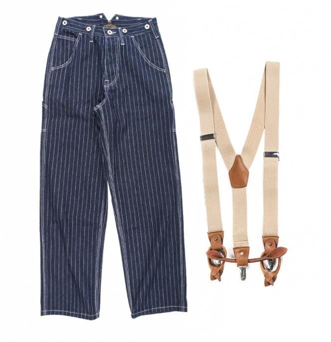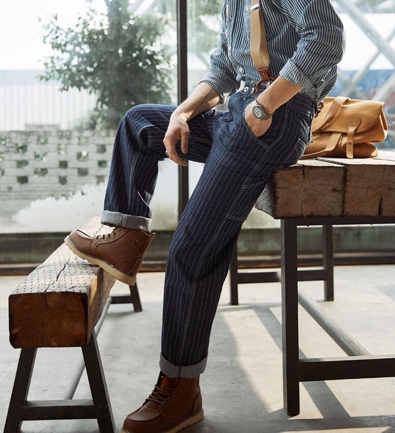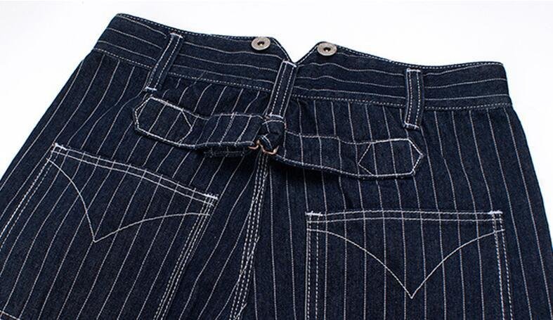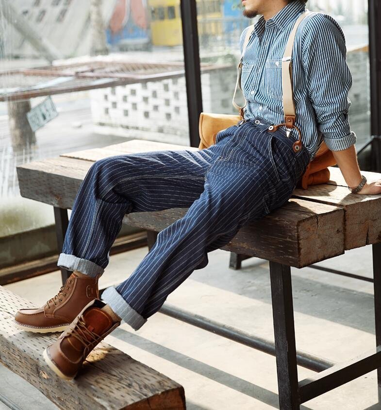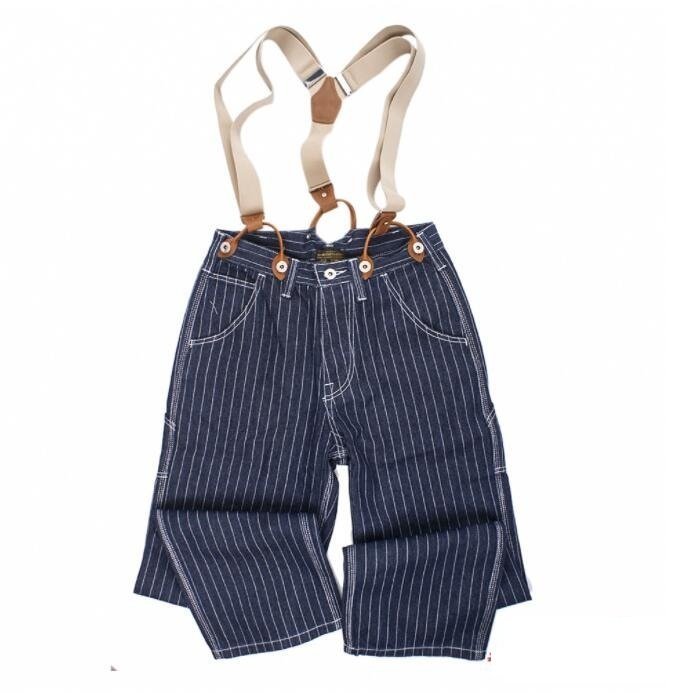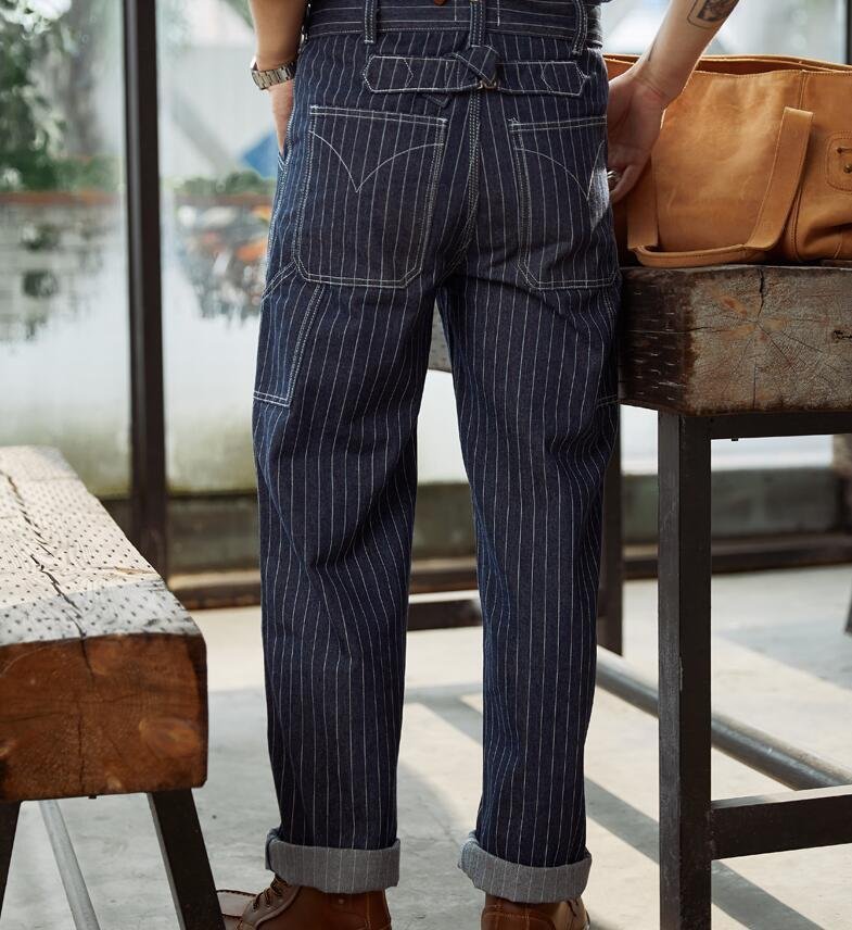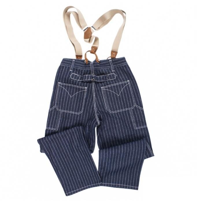 ジーンズ ストライプ柄 デニムパンツ メンズ オーバーオール つなぎ サスペンダーズボン 作業服 S~XL