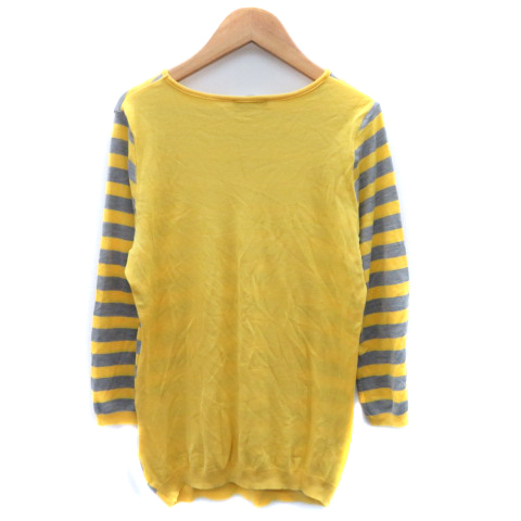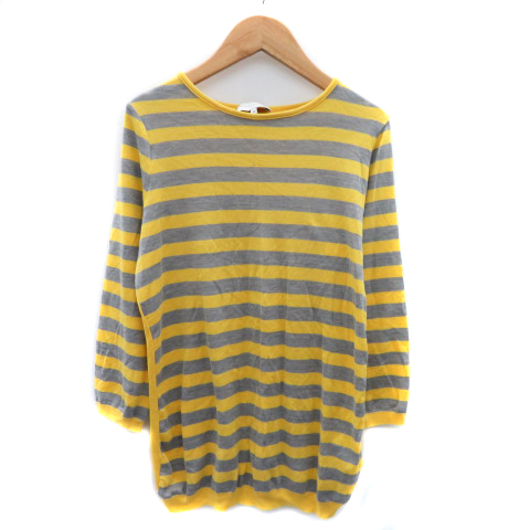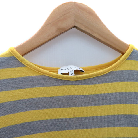 マッキントッシュ ロンドン MACKINTOSH LONDON ニット カットソー 七分袖 ボートネック ボーダー柄 シルク 40 グレー /YK40 レディース