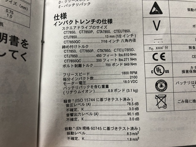 Snap-on スナップオン コードレスインパクト CTJ7850 18V バッテリー 充電器 インパクトレンチ