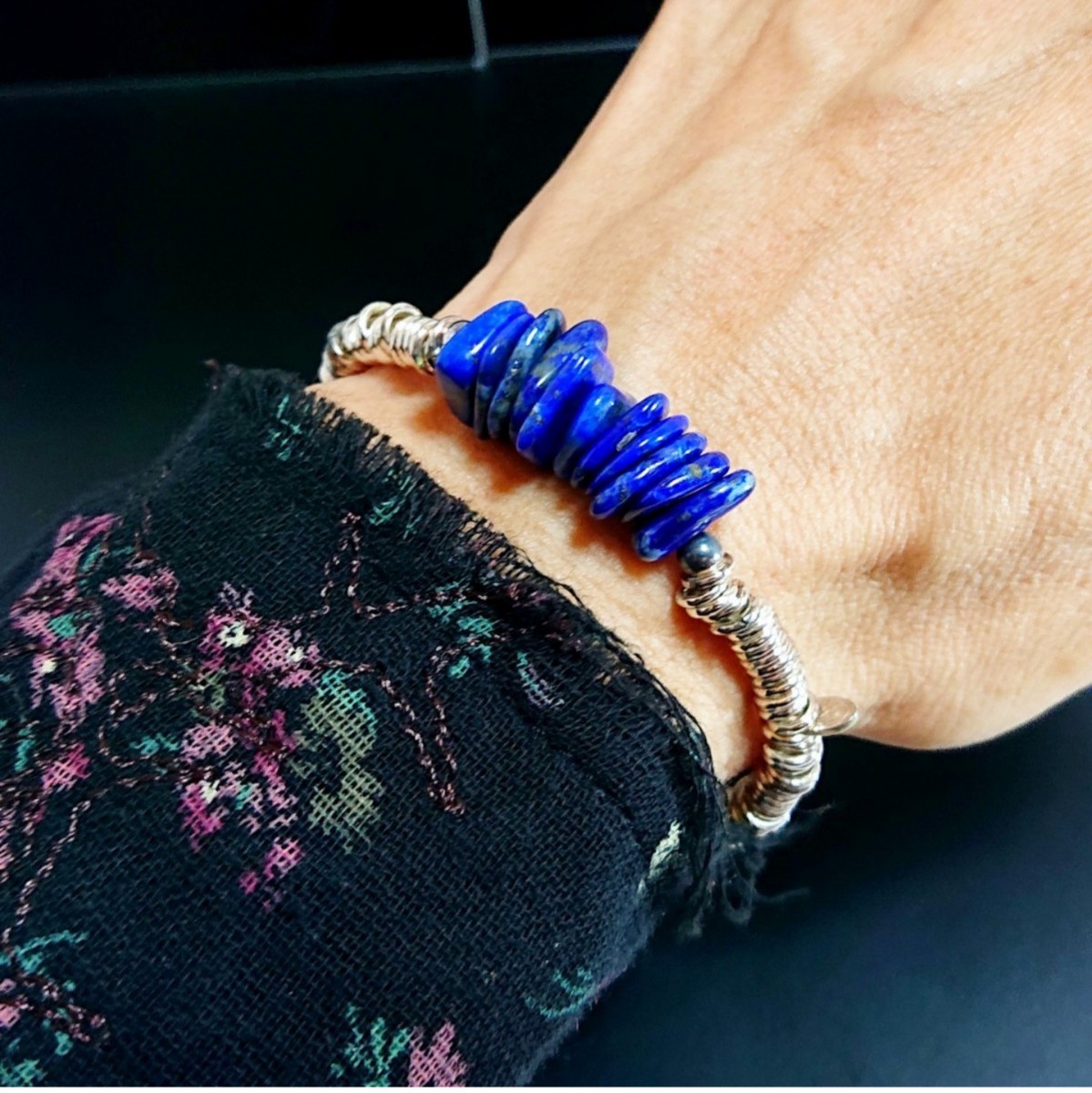 ラピスラズリとシルバーのコントラストがとっても華やかな印象です☆