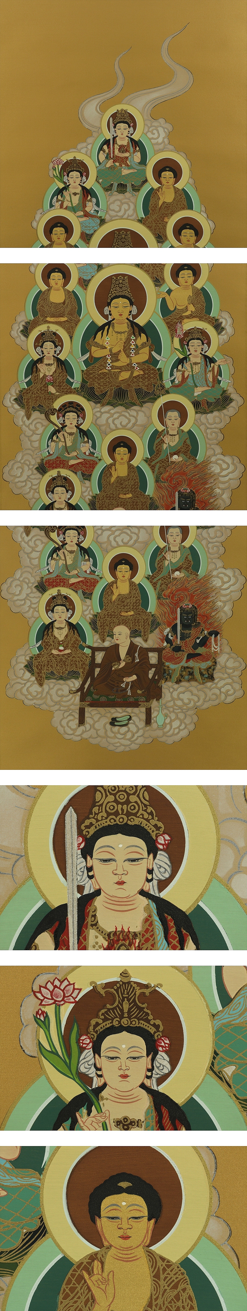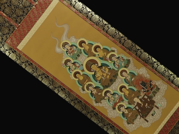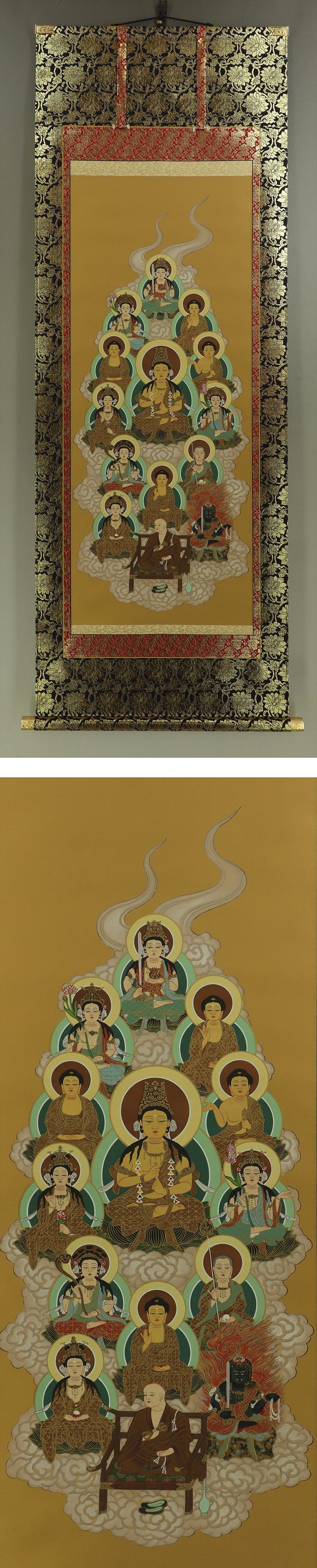 | №2306007【肉筆】仏画【真言十三佛】◆絹本◆合箱◆掛軸 | |