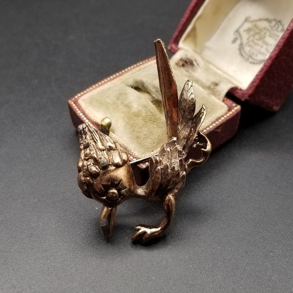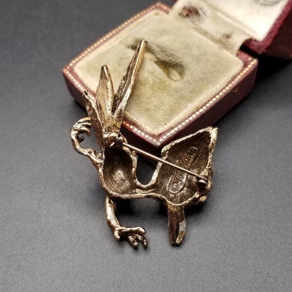 60'70's Tortolani ロードランナー ヴィンテージ ブローチ モチーフジュエリー 鳥キャラクター ブロンズトーン レトロキュート 存在感 Y9-C