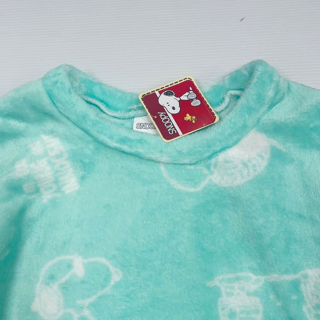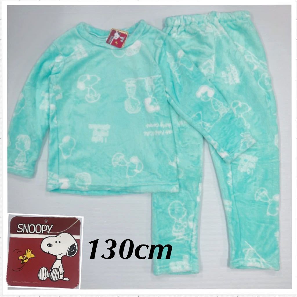 新品62078スヌーピー130cm ミント ジュニアフリース丸首長袖パジャマかぶりフランネルパジャマルームウェアあったか素材男女兼用
