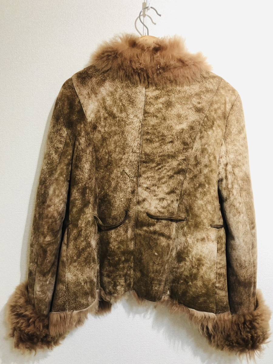 B25【Freyia】 リアル ムートン ジャケット コート ファー L 茶系 トルコ製 ◆美品◆
