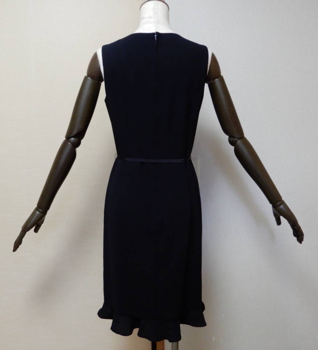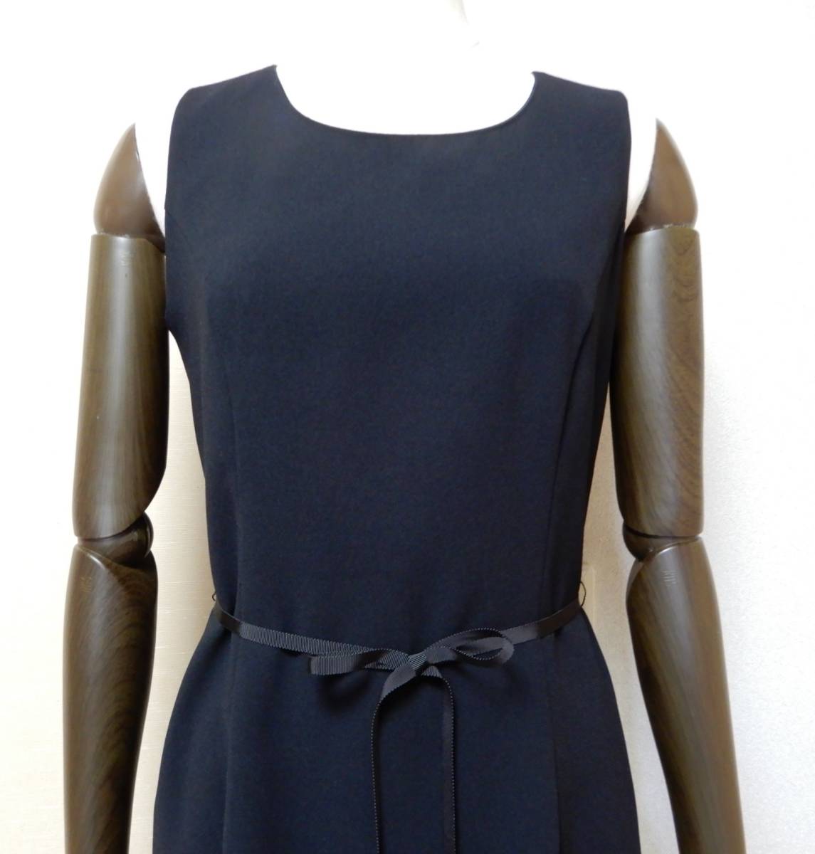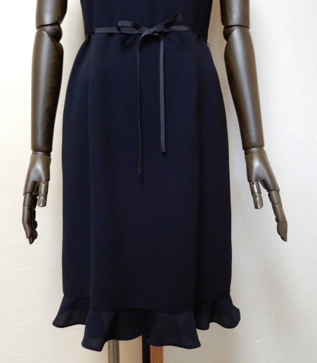 中古 クロスプラス 黒 ワンピース ノースリーブ 9号 着丈93cm ひざ丈 PLATA フレア裾 チューリップ マーメイド フォーマル 30代 40代
