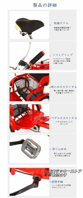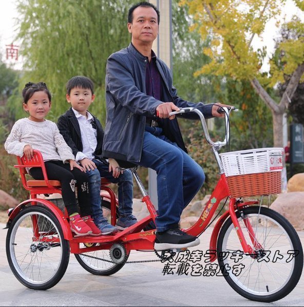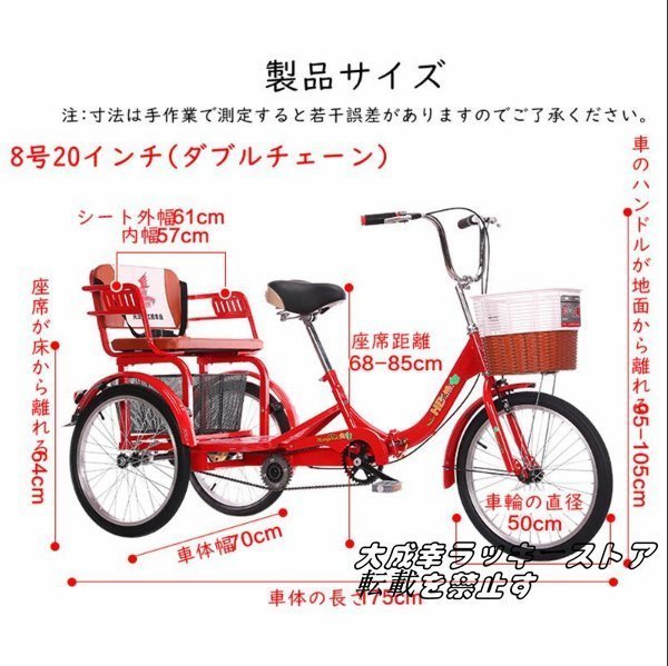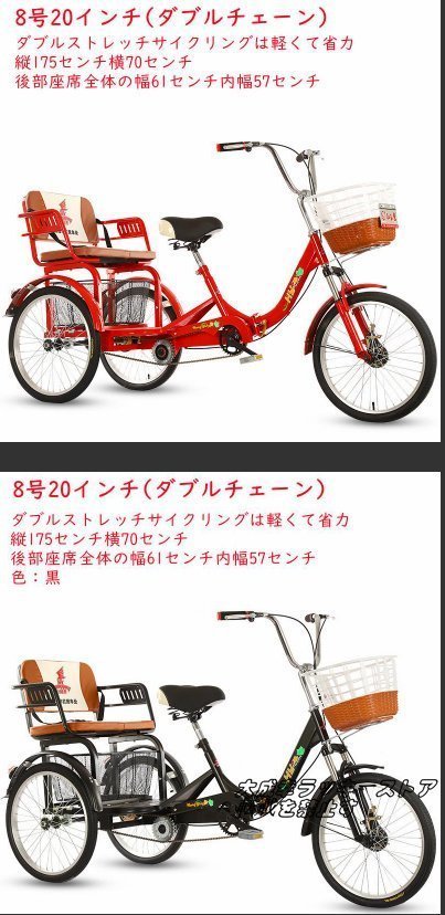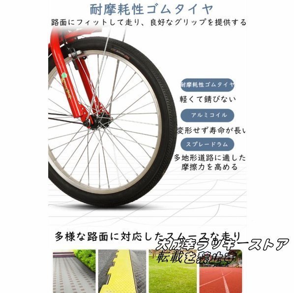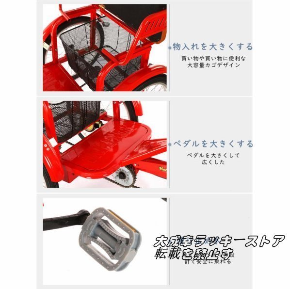 新入荷☆20インチ三輪自転車 座席高さ調節可能 アショッピングバスケット付き 大人用 高齢者用 三輪車 座席付き 背もたれ シートベルト 122
