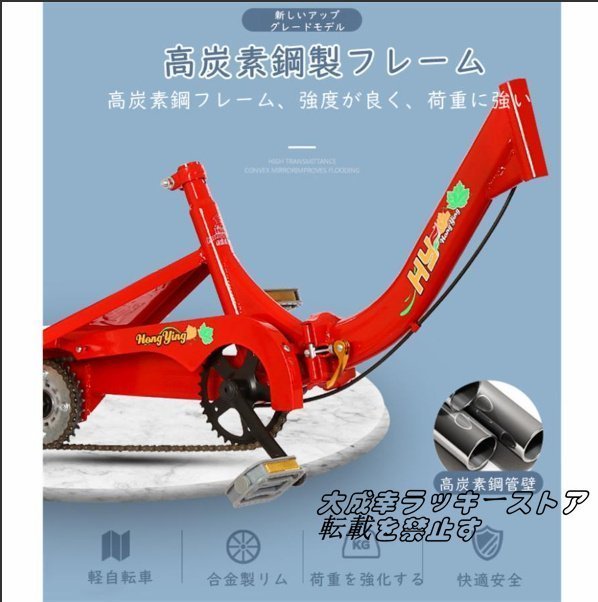 着実かつ頑丈:この人力車の三輪車は、高炭素鋼の厚みのあるボディのボディで設計されており、より強力です。 より安定した3本のタイヤを装備。 ディファレンシャルギア、よりスムーズなステアリング、より小さな回転半径。 フロントとリアのディスクブレーキ。