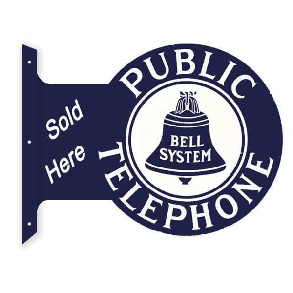 TELEPHONE ラウンド フランジ サイン 看板 メタル ブリキ 垂直 壁面 店舗 アドバタイジング TEL 公衆 電話