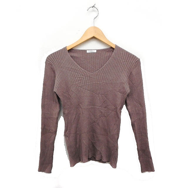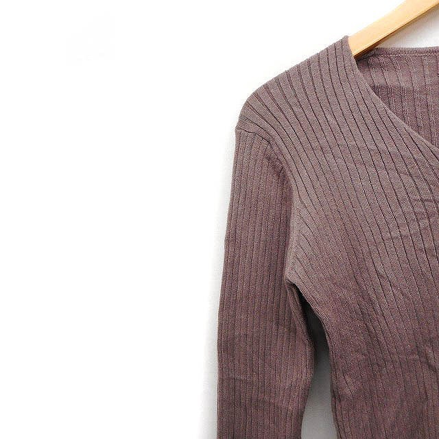 アーバンリサーチ URBAN RESEARCH リブ ニット セーター Vネック 長袖 無地 F ブラウン /FT18 レディース