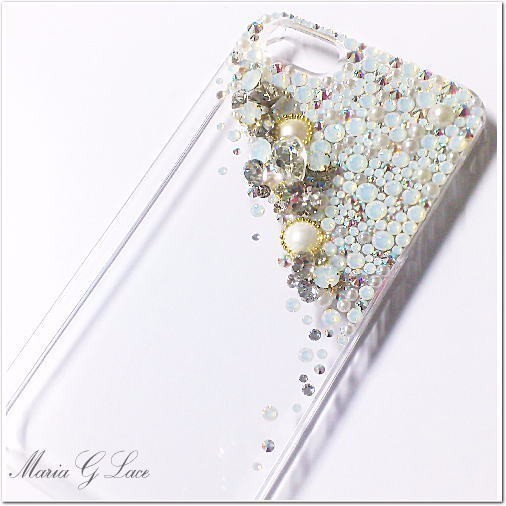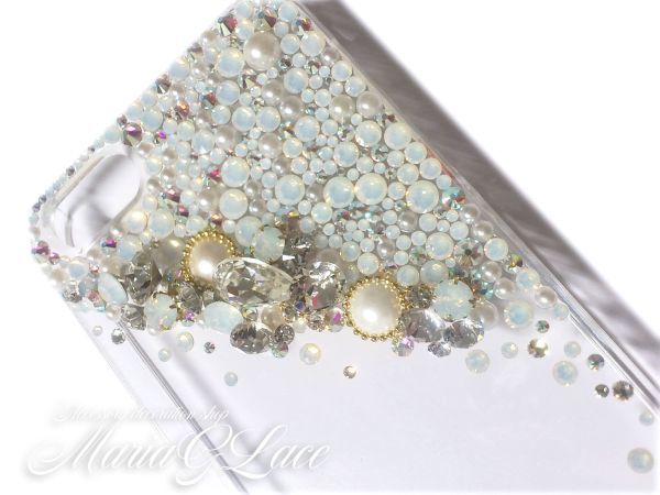 まるで雪のようなホワイトオパールと、プラスチックパール、BijouなどをMIXし、舞い散るようなデザインに仕上げました。