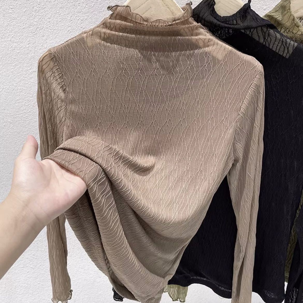 袖以外は裏地つきなので下着が透けにくく、薄手のシースルートップスより生地がしっかりしていてあたたかいです