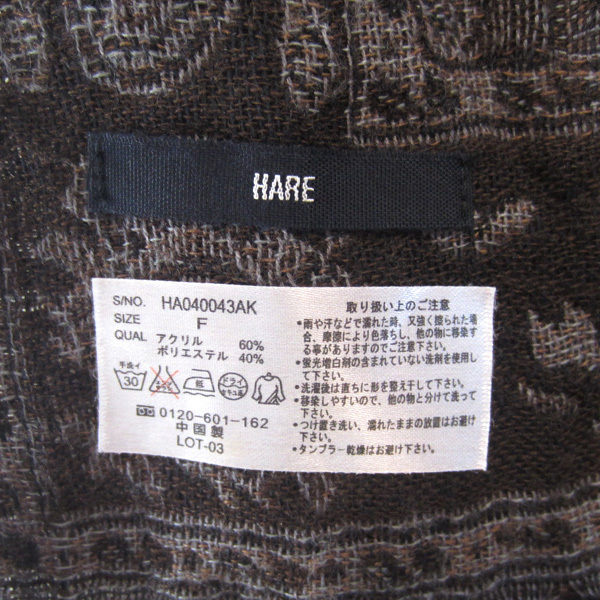HARE/ハレ 厚手 総柄 大判ストール 茶系