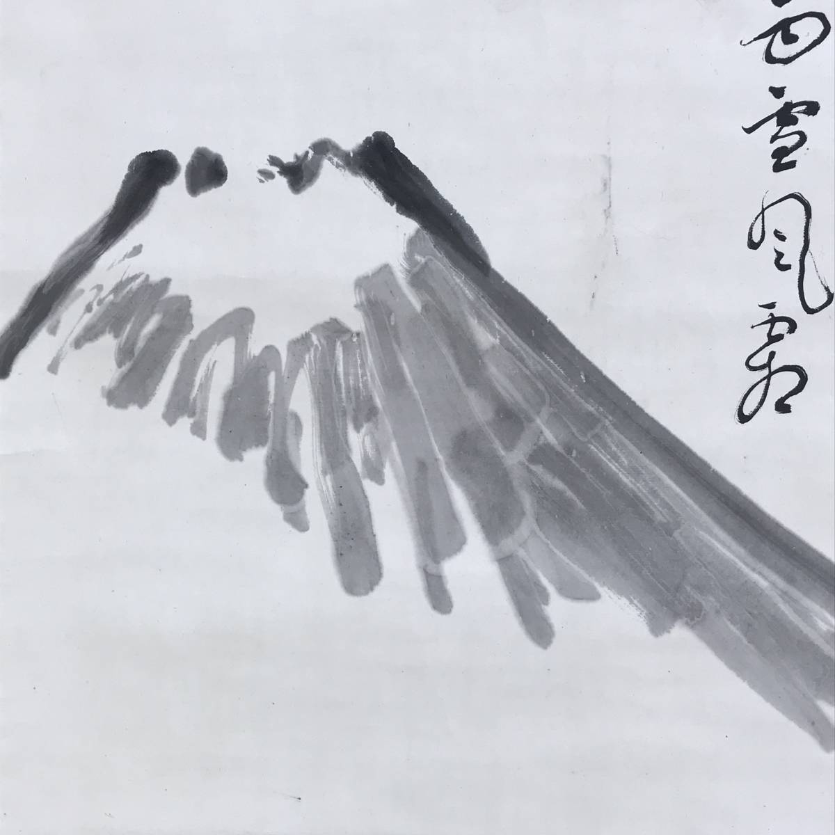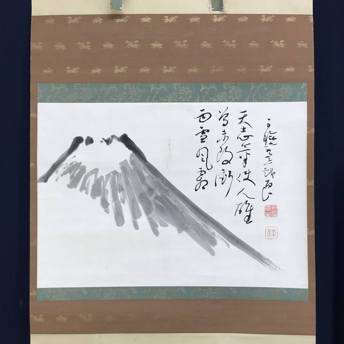 真作/曹洞宗管長/秋野孝道/富士山画賛/山水図/富士山/横物//掛軸☆宝船☆AD-631