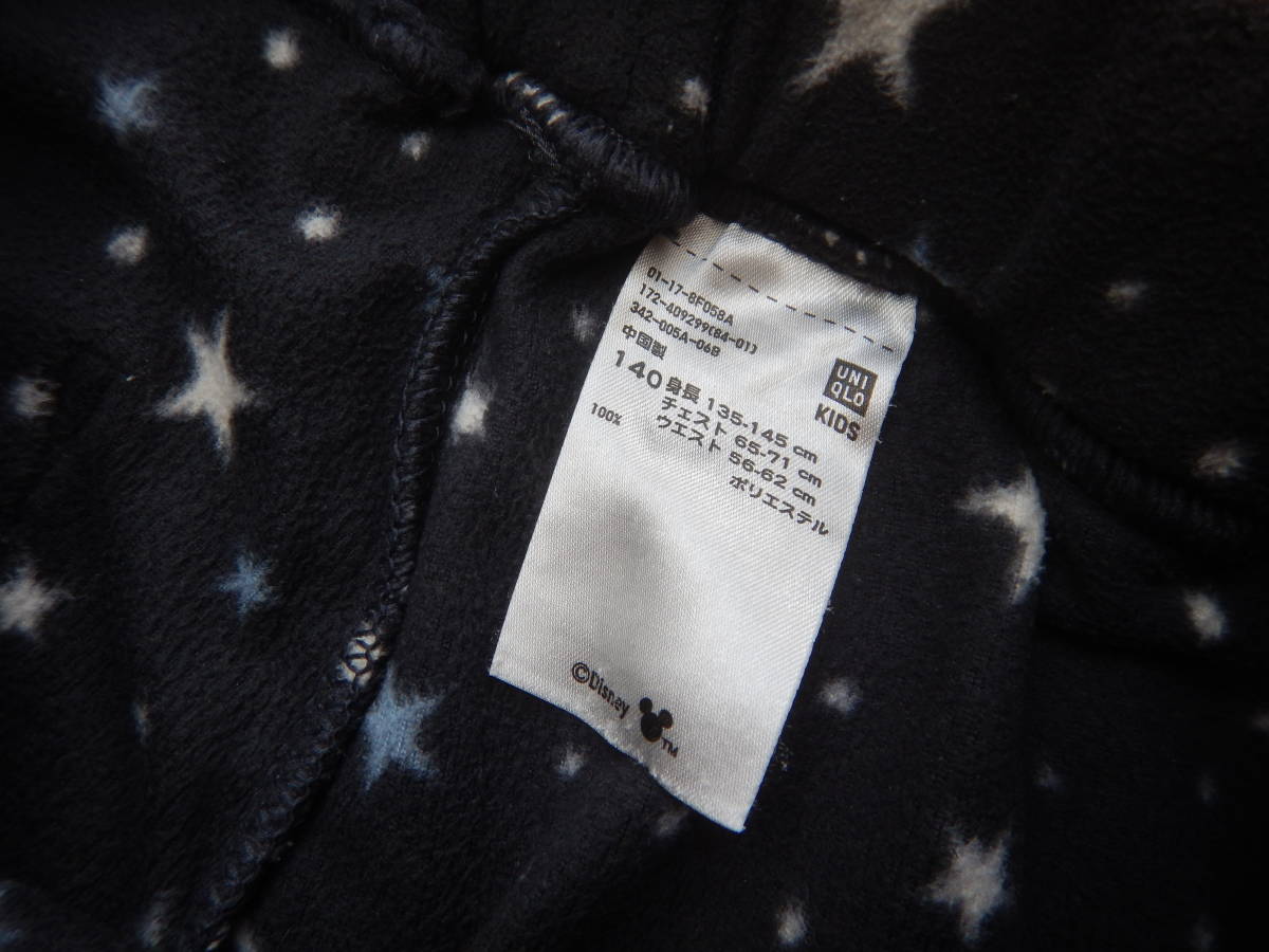 UNIQLO フリースパジャマ 上下セット サイズ140 秋冬 フリース素材 ズボン 長袖トップス ユニクロ ミッキー