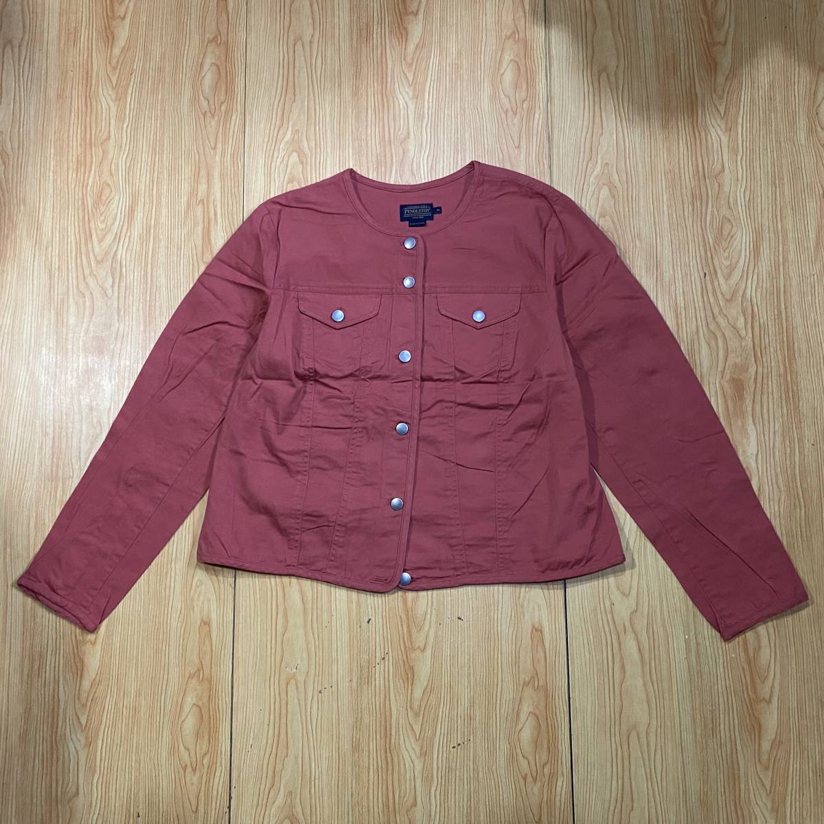 即決・輸入古着・PENDLETON・ペンドルトンのコットンツイル素材のノーカラージャケット・濃いサーモン・XL