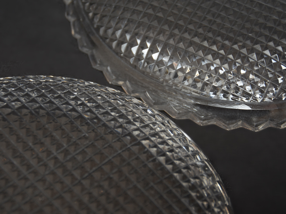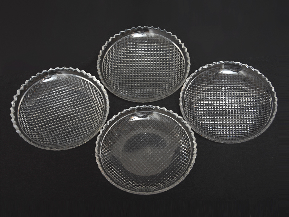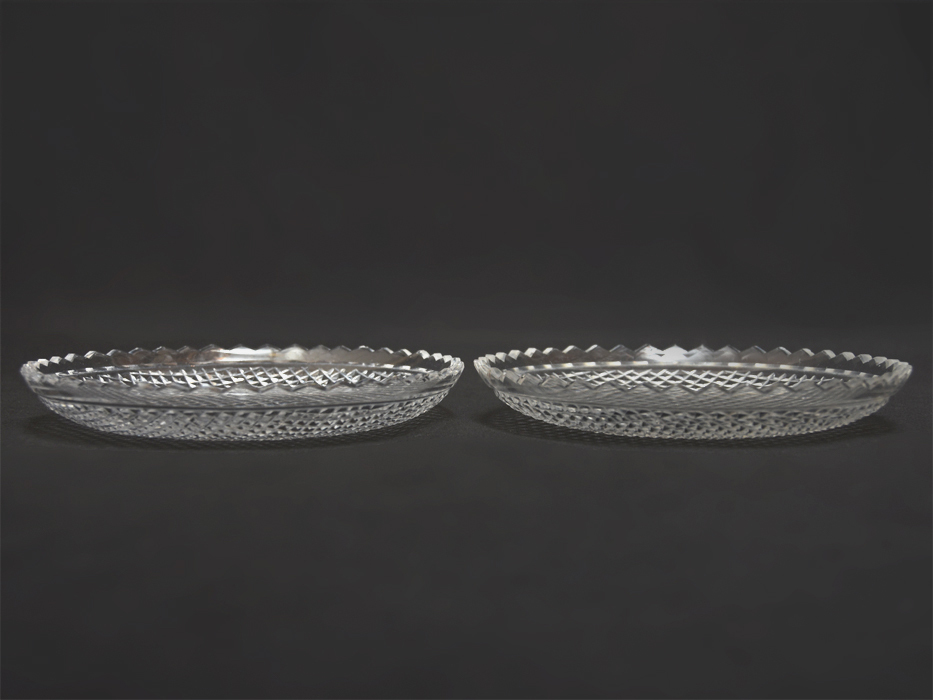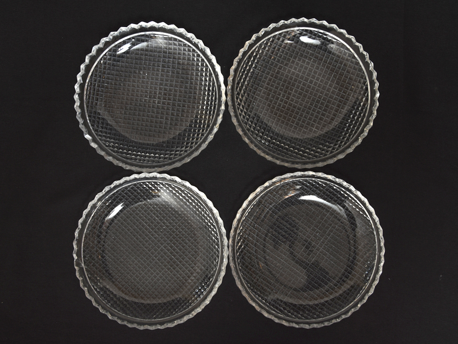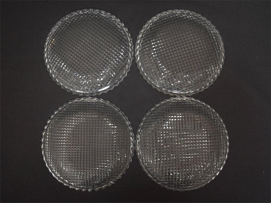 時代 切子 ガラス 魚子紋 銘々皿 4客 江戸切子 薩摩切子 ギヤマン 工芸ガラス glass 硝子 クリスタル |