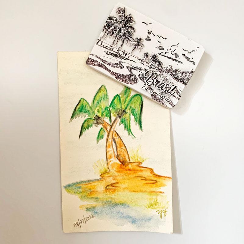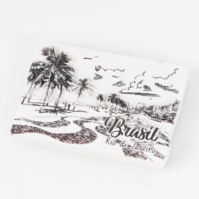 チケット風の切れ目が遊び心あるデザインのブラジルマグネットです。リオデジャネイロの有名なコパカバーナビーチの風景が描かれています。モノクロカラーなので、シンプルな家電や雑貨とも相性抜群です。
