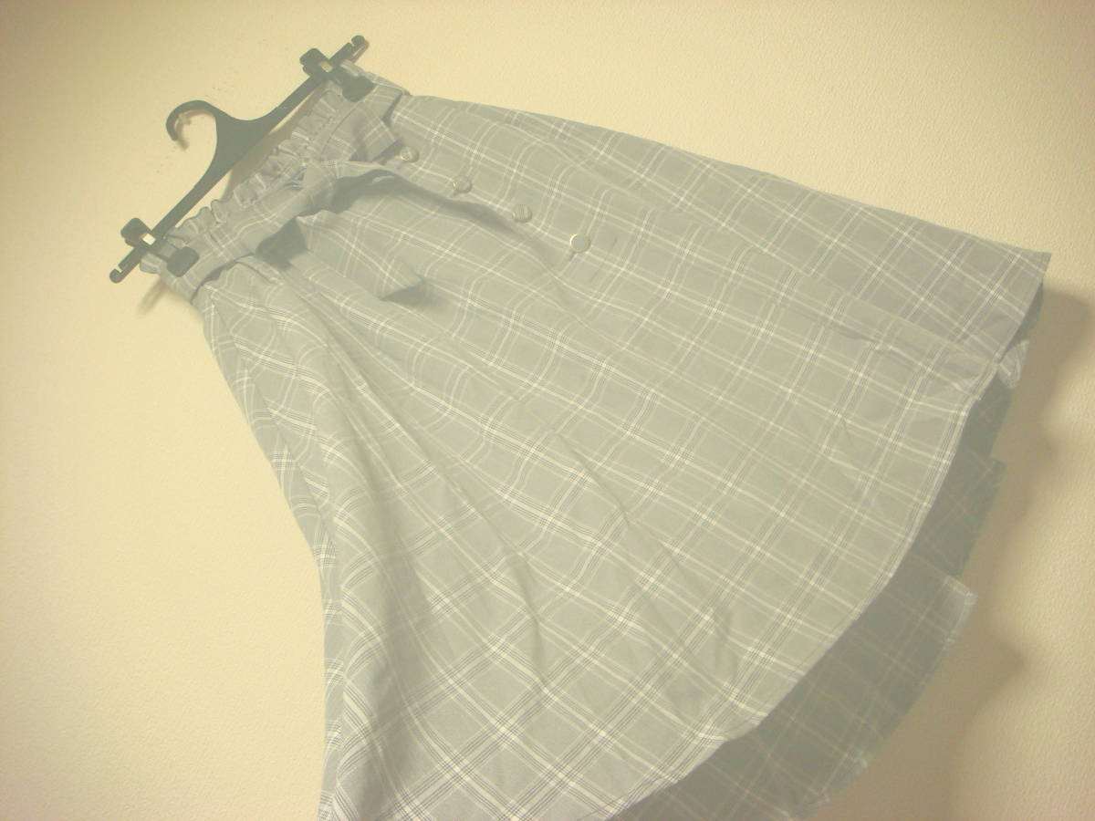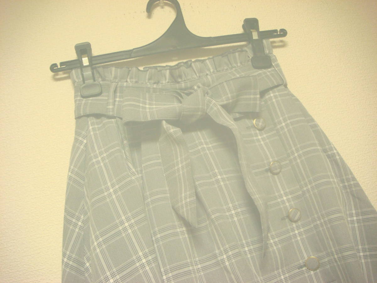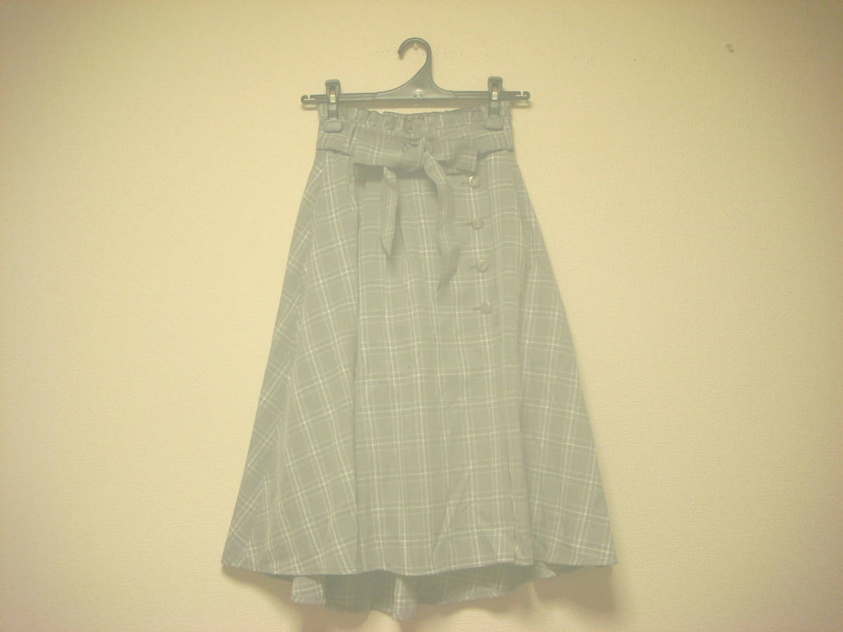 マジェスティックレゴン チェック柄 リボン付き フレアスカート グレー系 美品