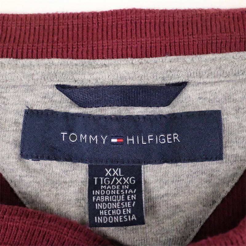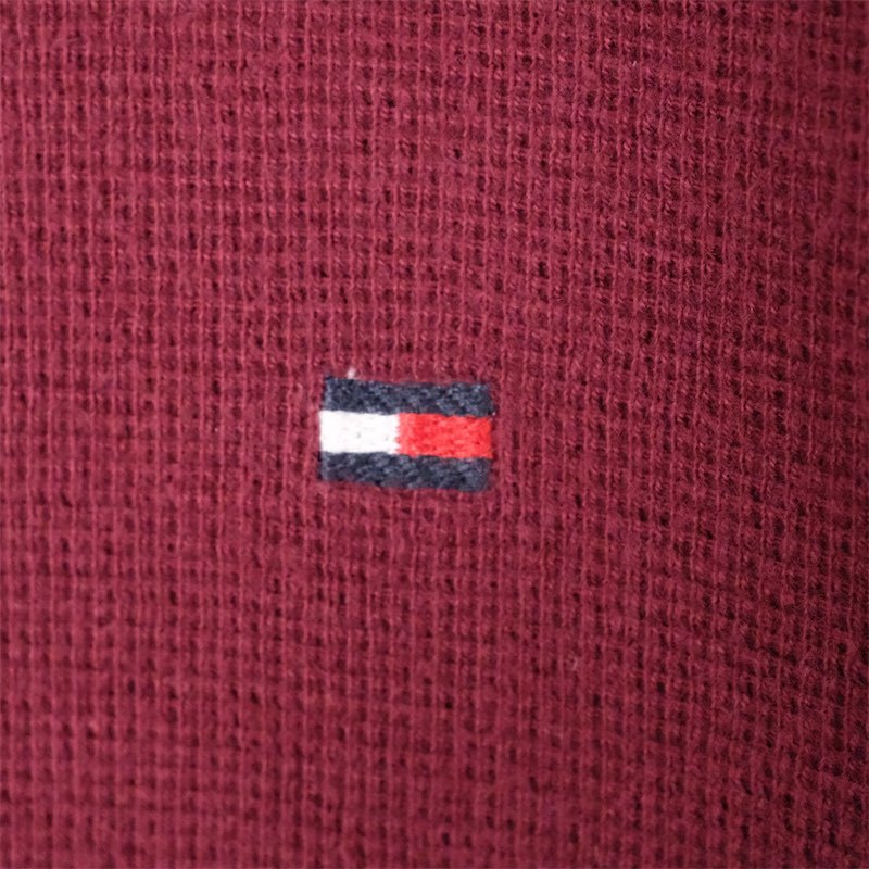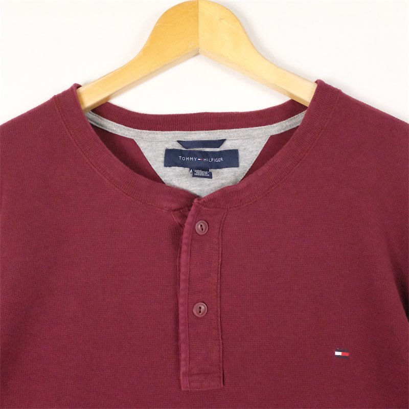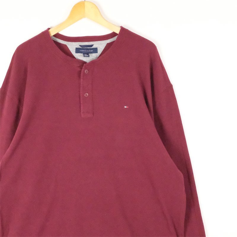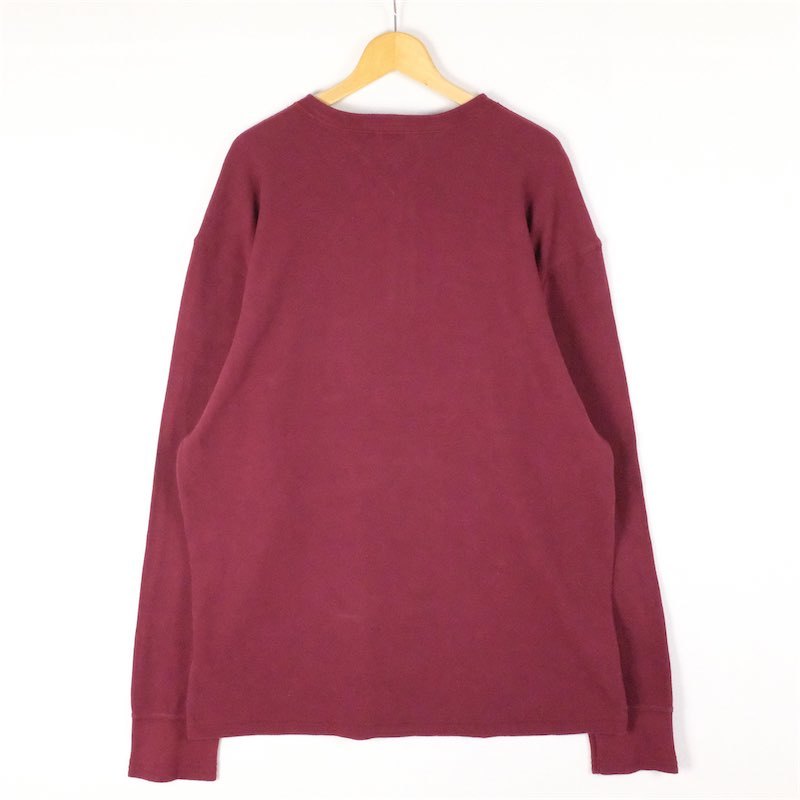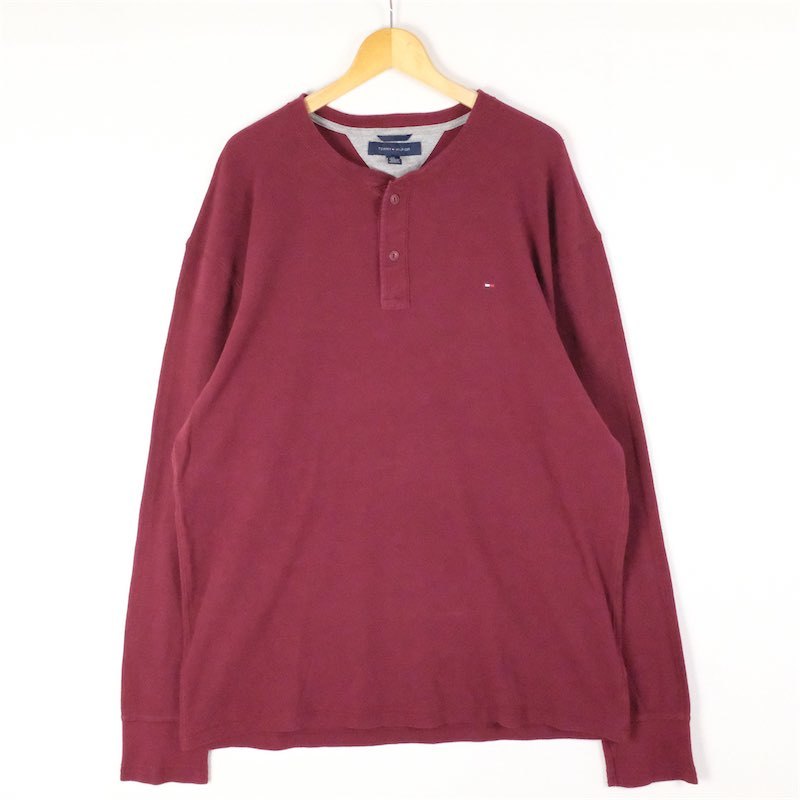古着 大きいサイズ トミーヒルフィガー 長袖ヘンリーネンク コットンサーマルTシャツ メンズUS-2XLサイズ 無地 ボルドー系 tn-1983n