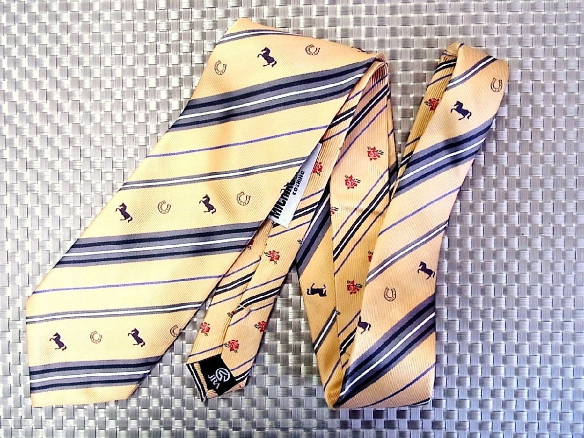 ♪k02626C♪良品【JRA】日本ダービー 79th ミチコロンドン【蹄鉄 馬 ウマ 動物 ストライプ 柄】ネクタイ